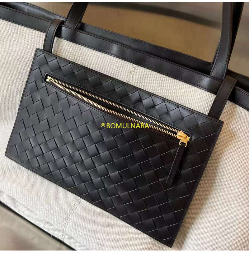 ?대조적인 색감의 가죽 소재를 인트레치아토 위빙