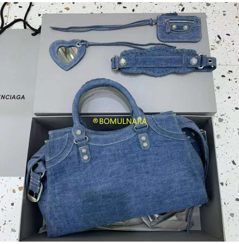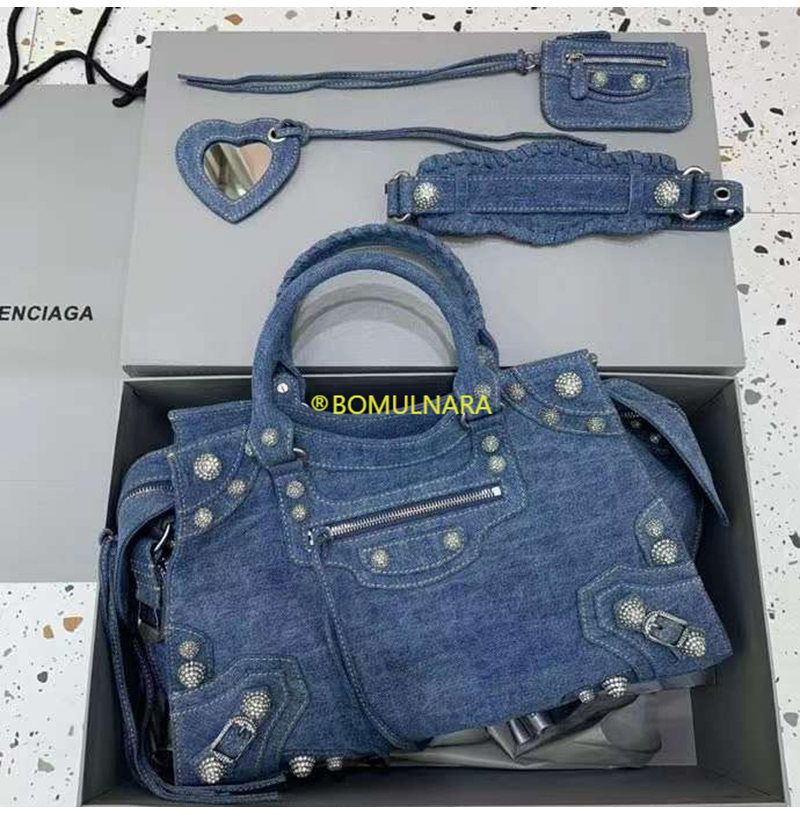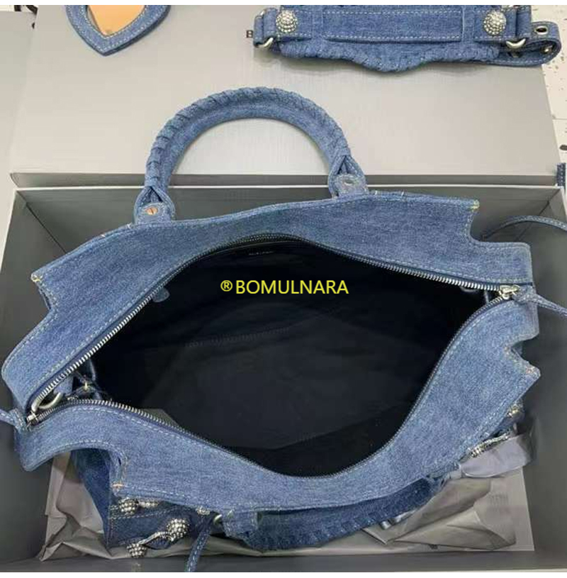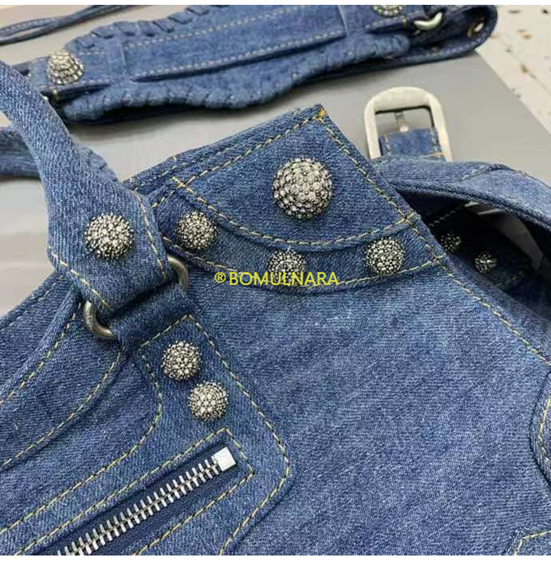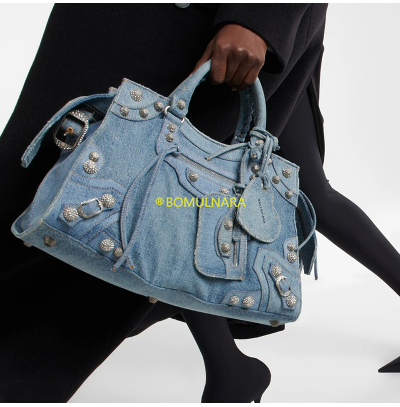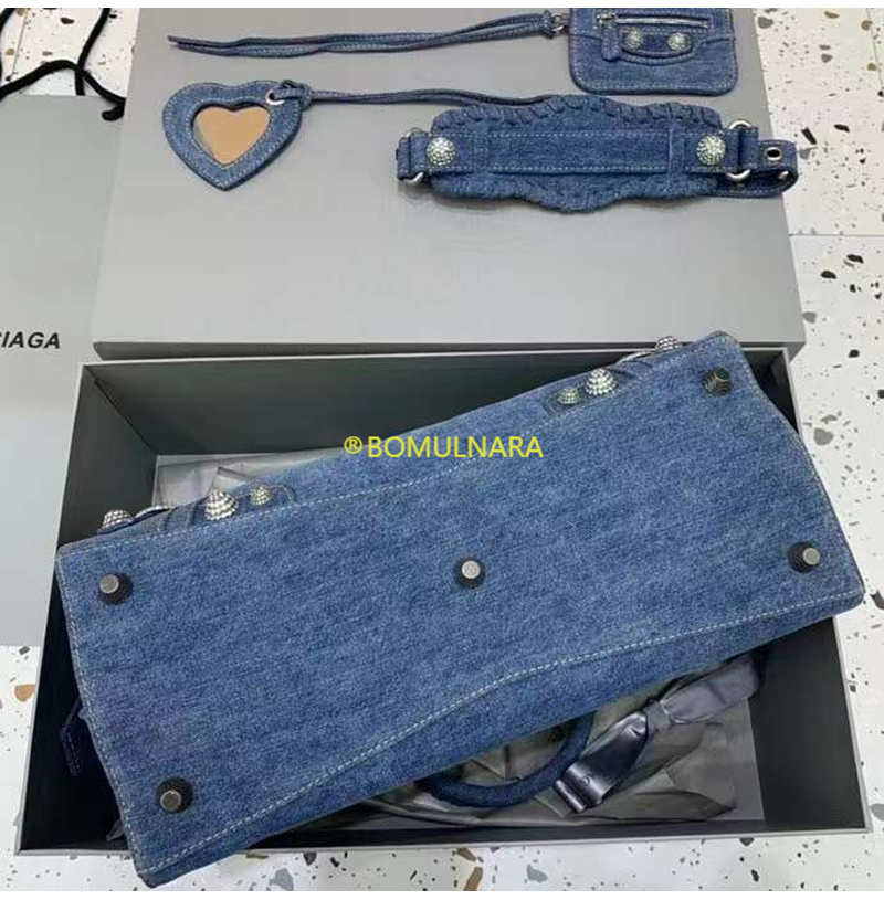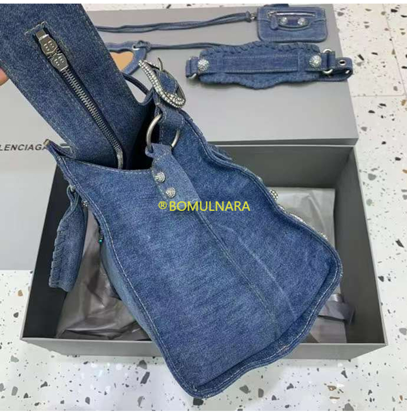 [스페셜오더]BALENCIAGA-700451 발렌시아가 블루 데님 라인스톤 Neo Cagole City 핸드백 38CM