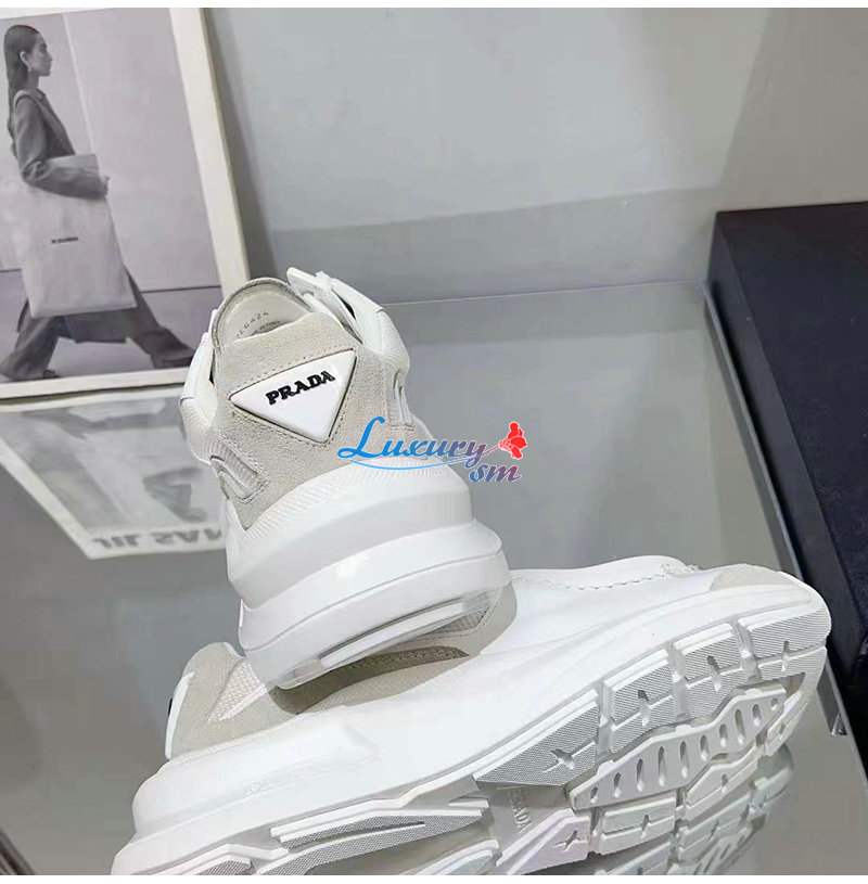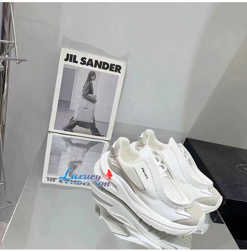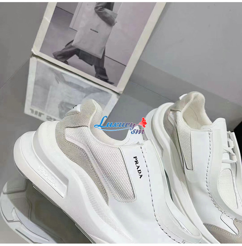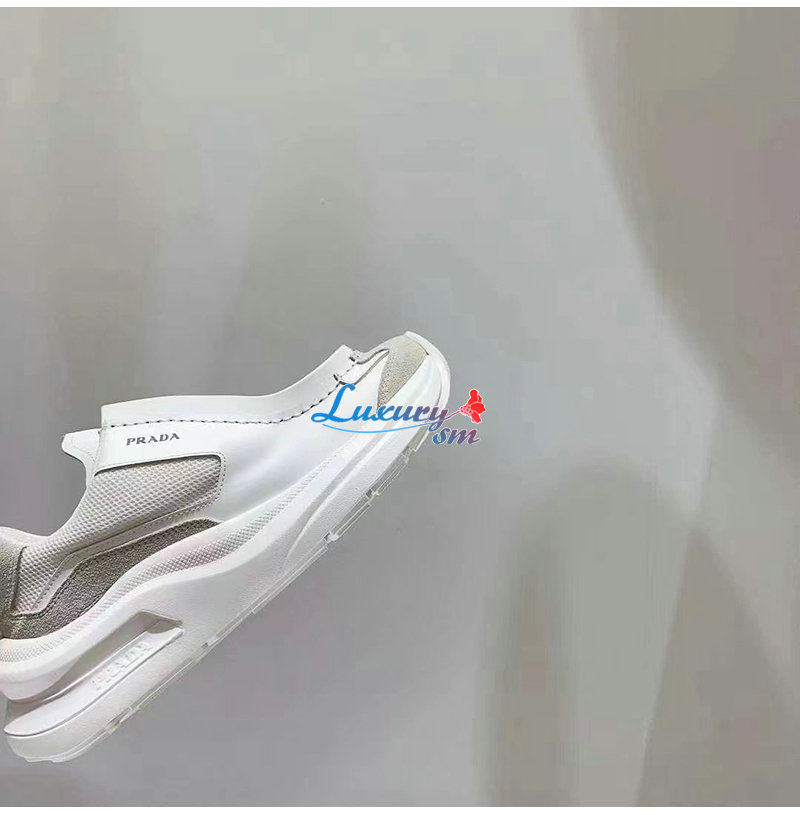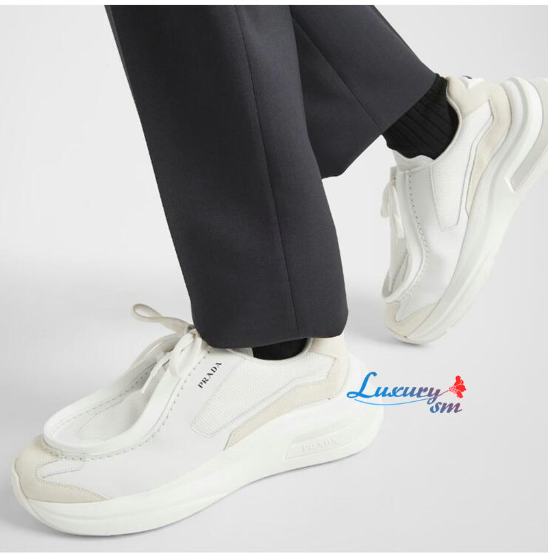 PRADA-2EG424 프라다 화이트 브러시드 가죽 스니커즈 남성용