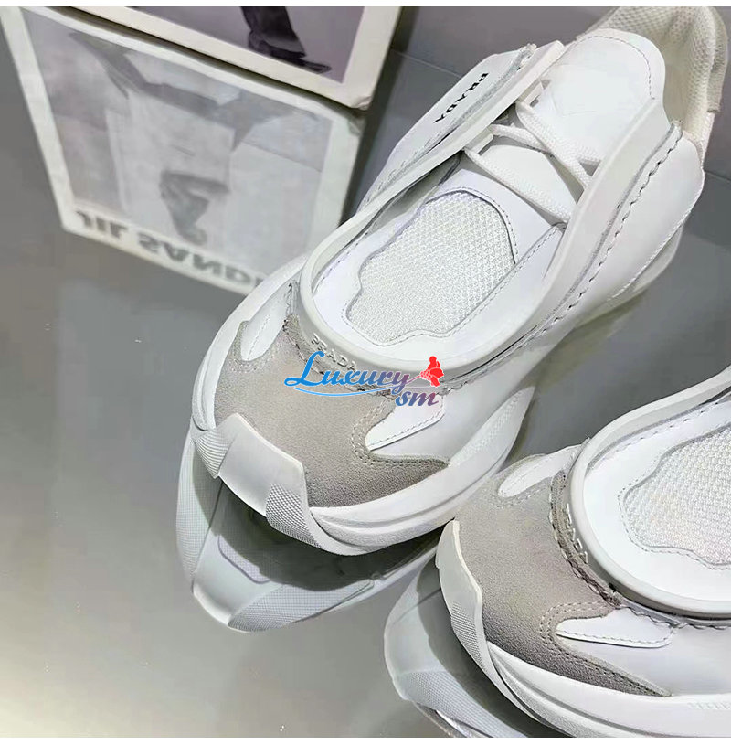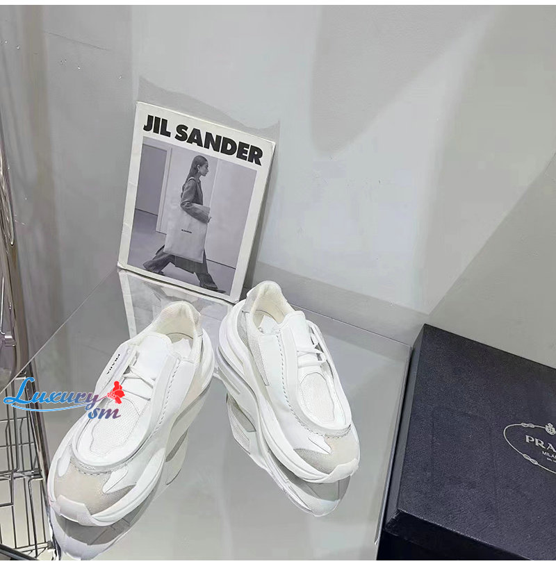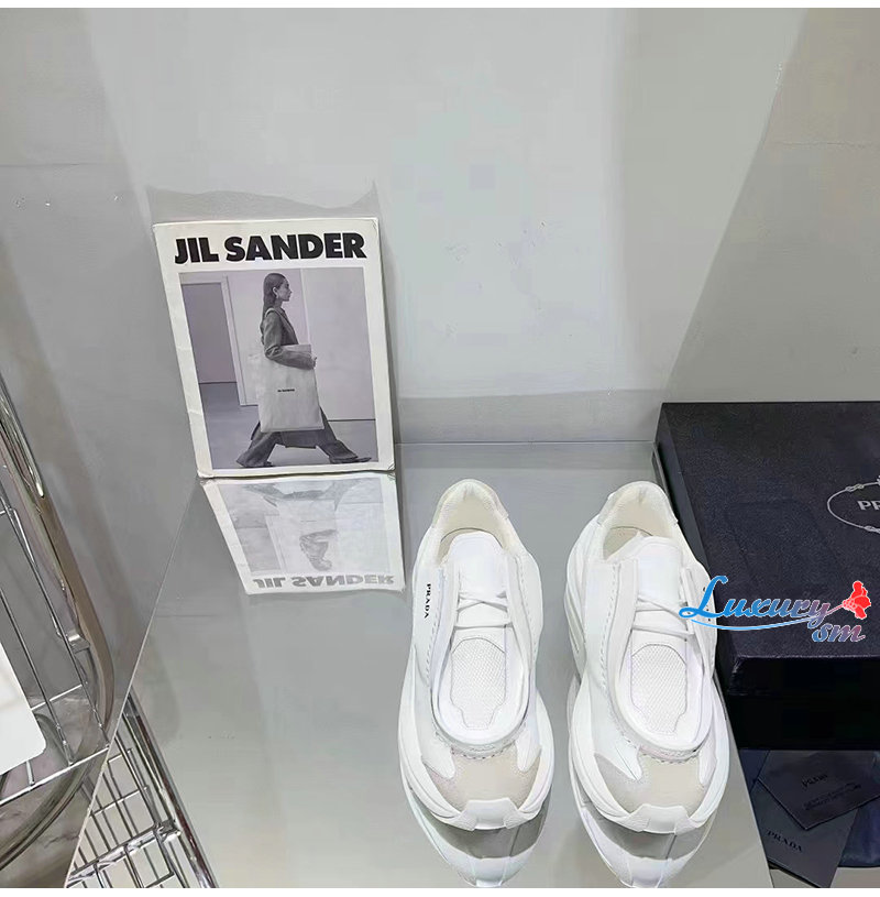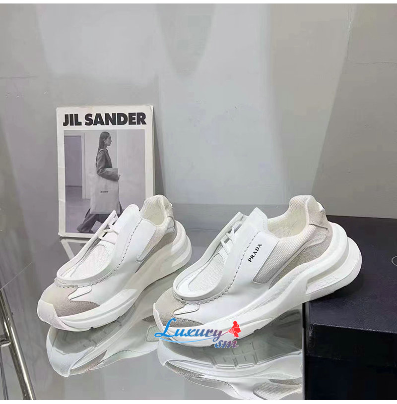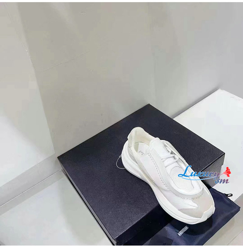 PRADA-2EG424 프라다 화이트 브러시드 가죽 스니커즈 남성용