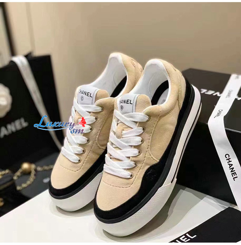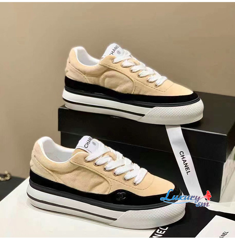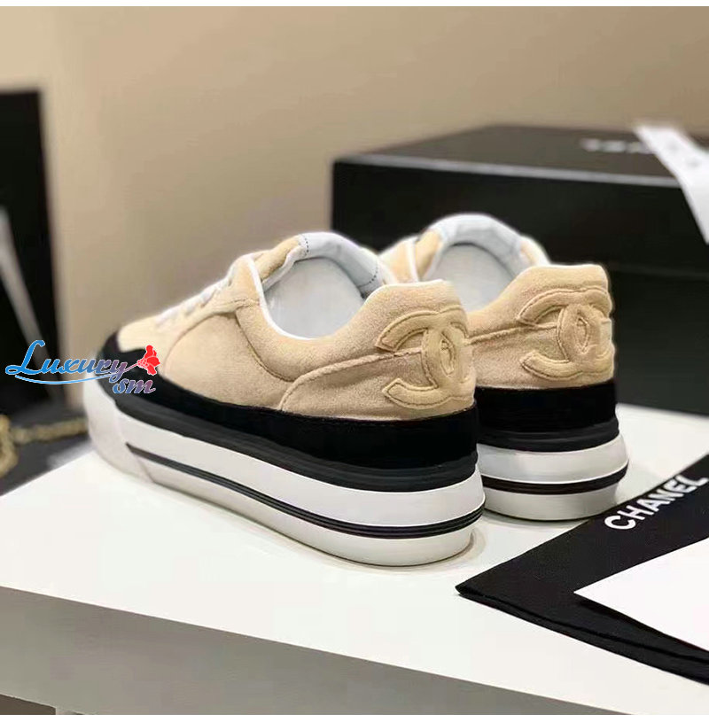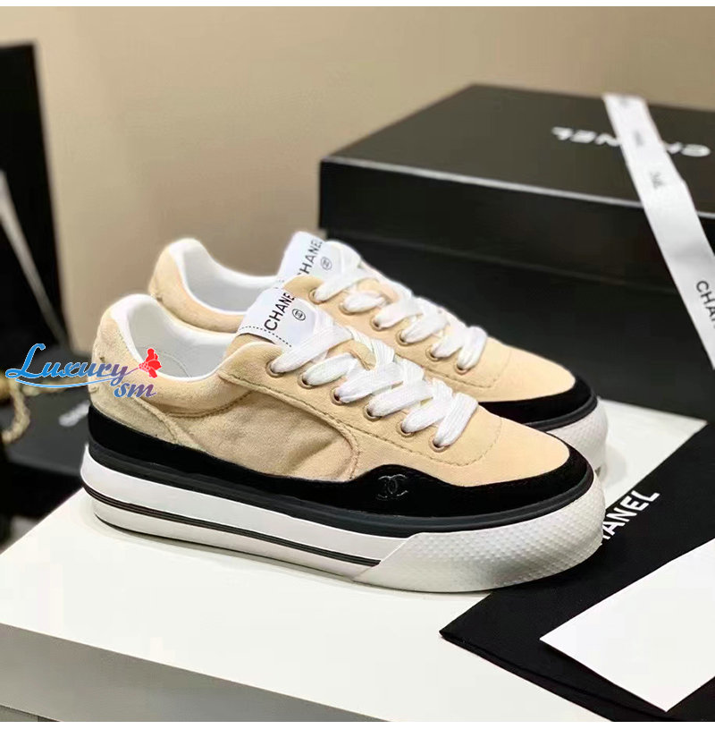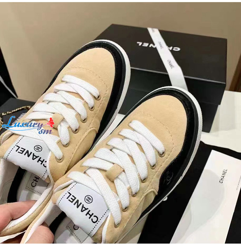 CHANEL-G45208 샤넬 아이보리 벨벳 스니커즈 여성용