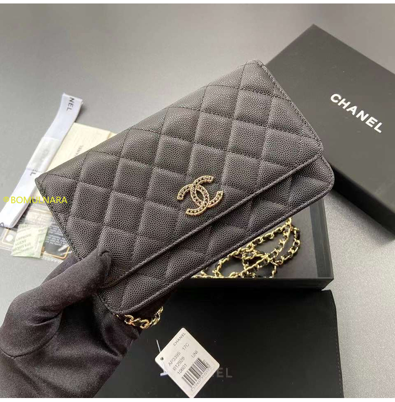 [스페셜오더]CHANEL-AP3395 샤넬 23A 블랙 캐비어 크리스탈 CC 로고 골드장식 WOC