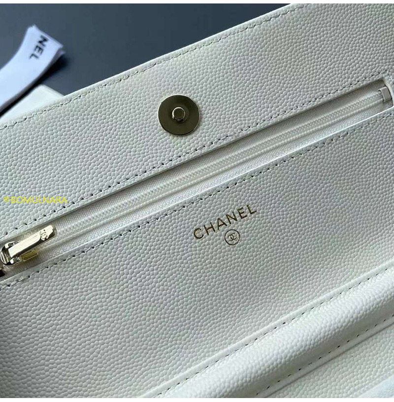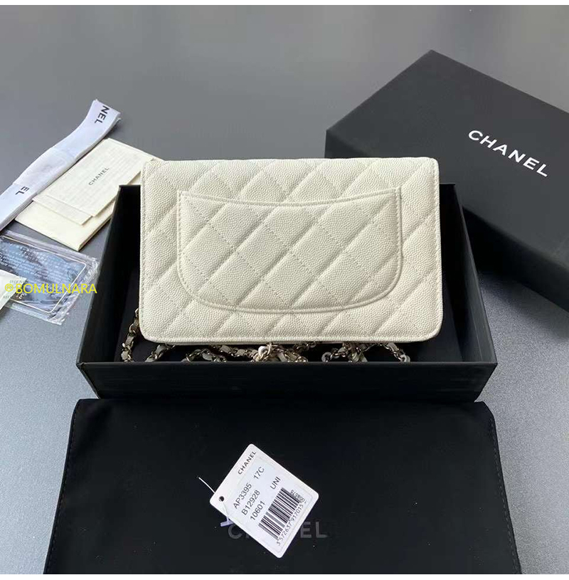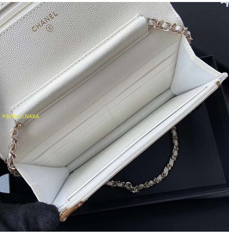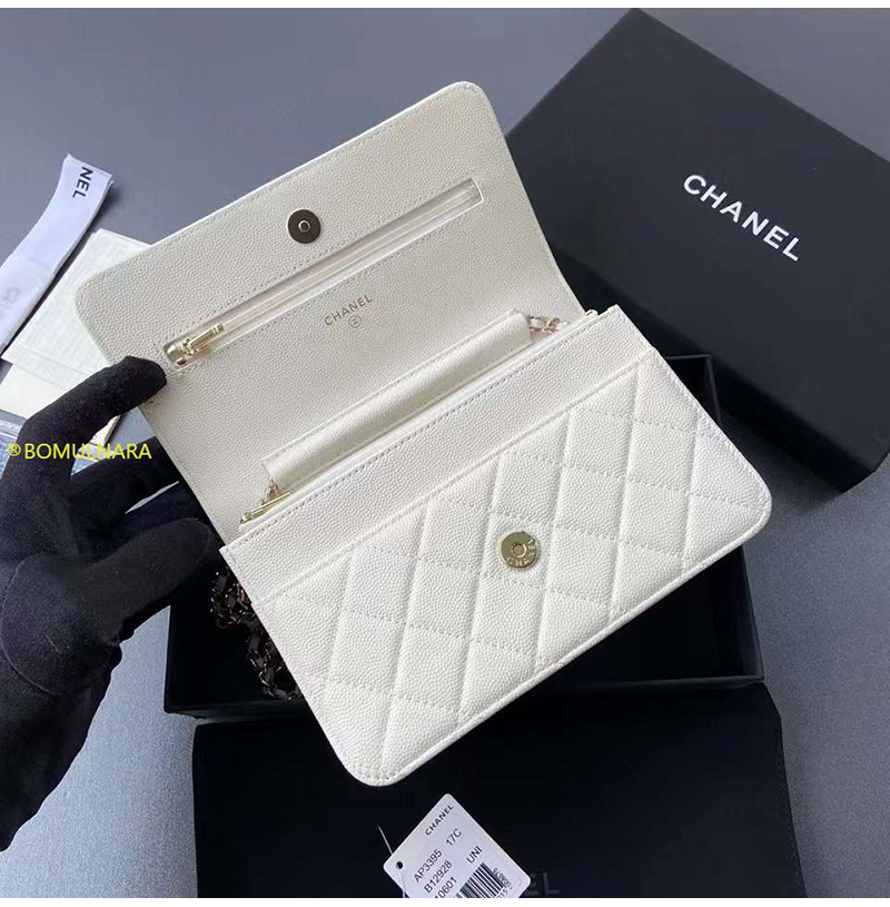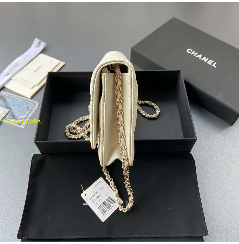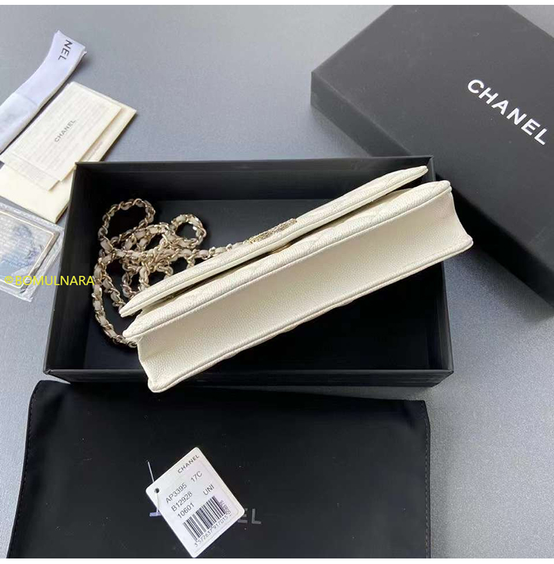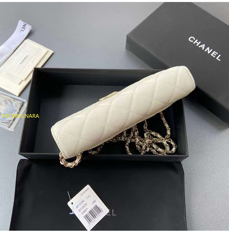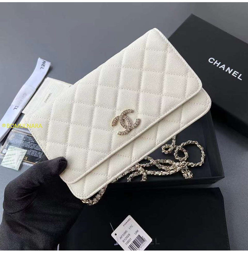 [스페셜오더]CHANEL-AP3395 샤넬 23A 화이트 캐비어 크리스탈 CC 로고 골드장식 WOC