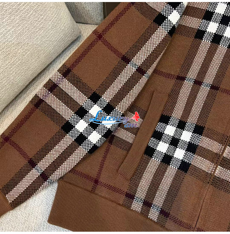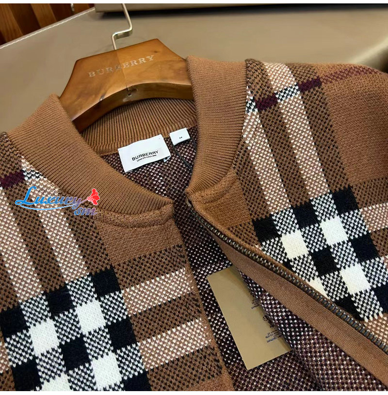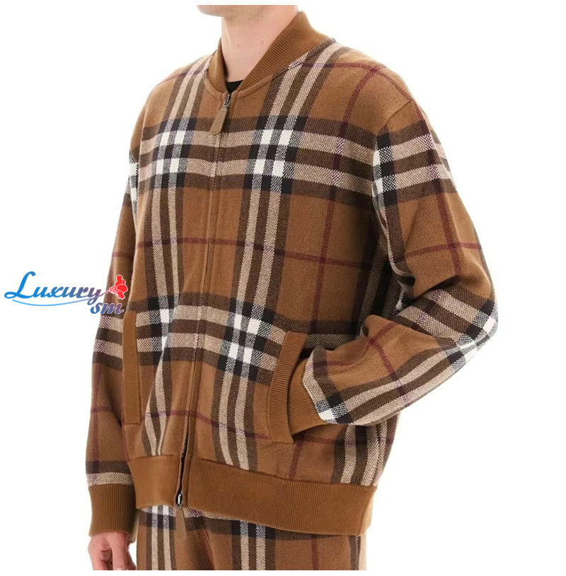 BURBERRY-08227 버버리 브라운 체크 무늬 니트 재킷 남성용
