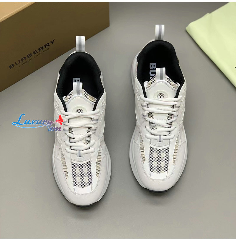 BURBERRY-80618801 버버리 화이트/베이지 메시 스웨이드 체크 코튼 스니커즈 남성용