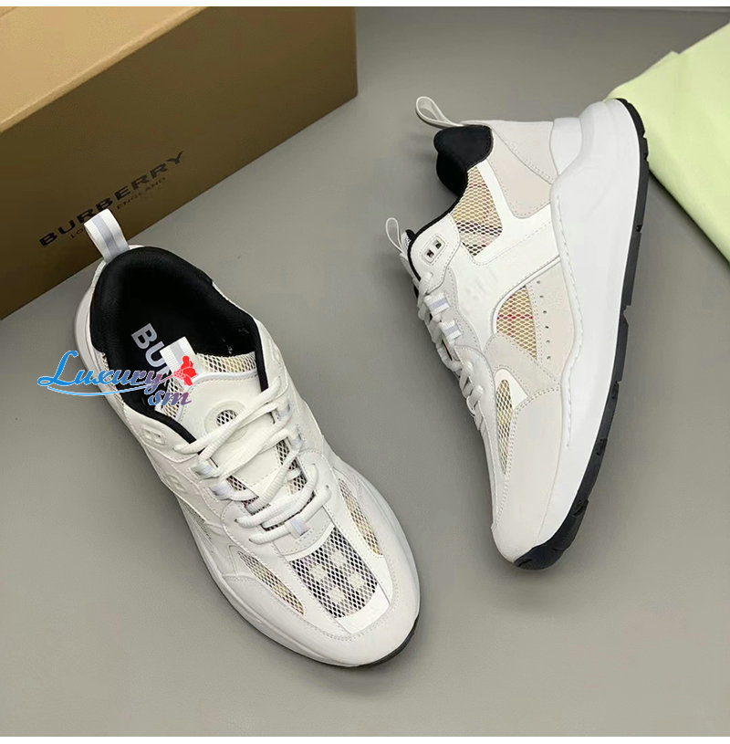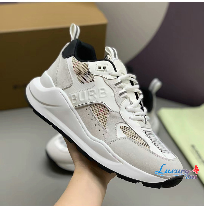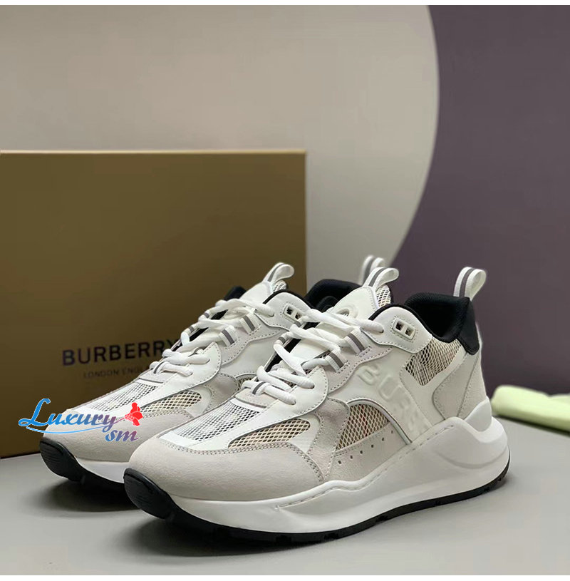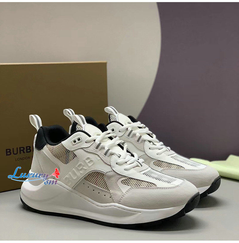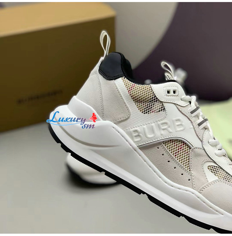 BURBERRY-80623611 버버리 화이트 레더 스웨이드 메시 스니커즈 남성용 가격 : 280,000원