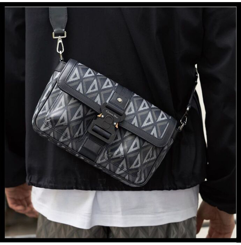 [스페셜오더]DIOR-1ESME 디올 그레이 CD Diamond 더블 포켓 HIT THE ROAD 메신저 백 27CM
