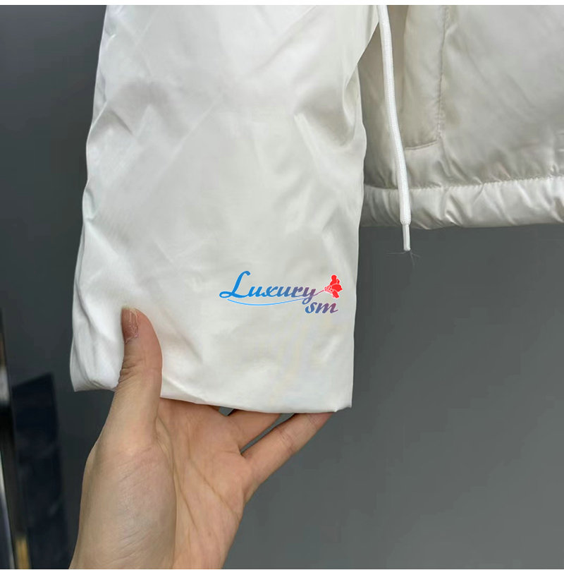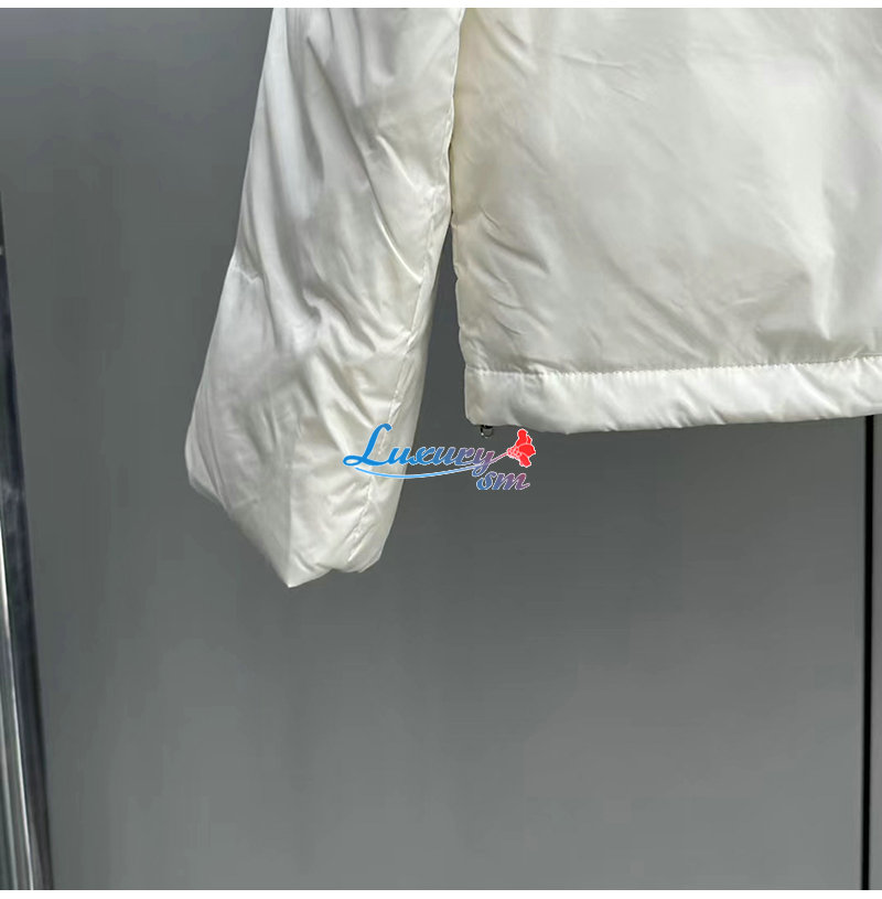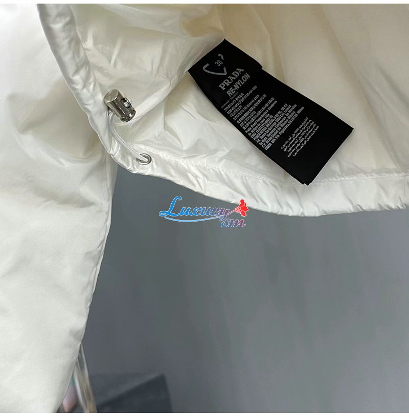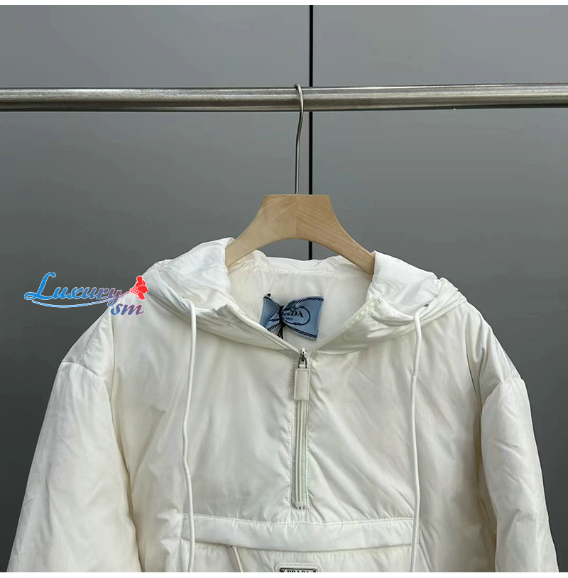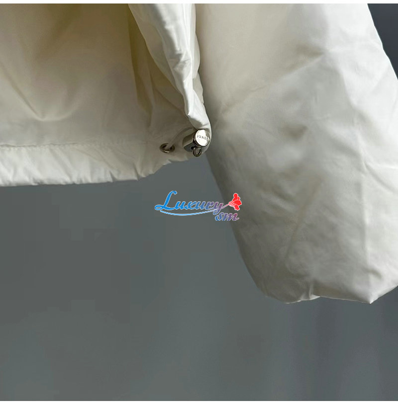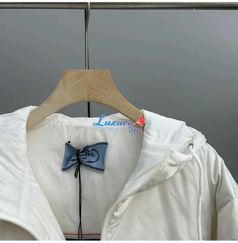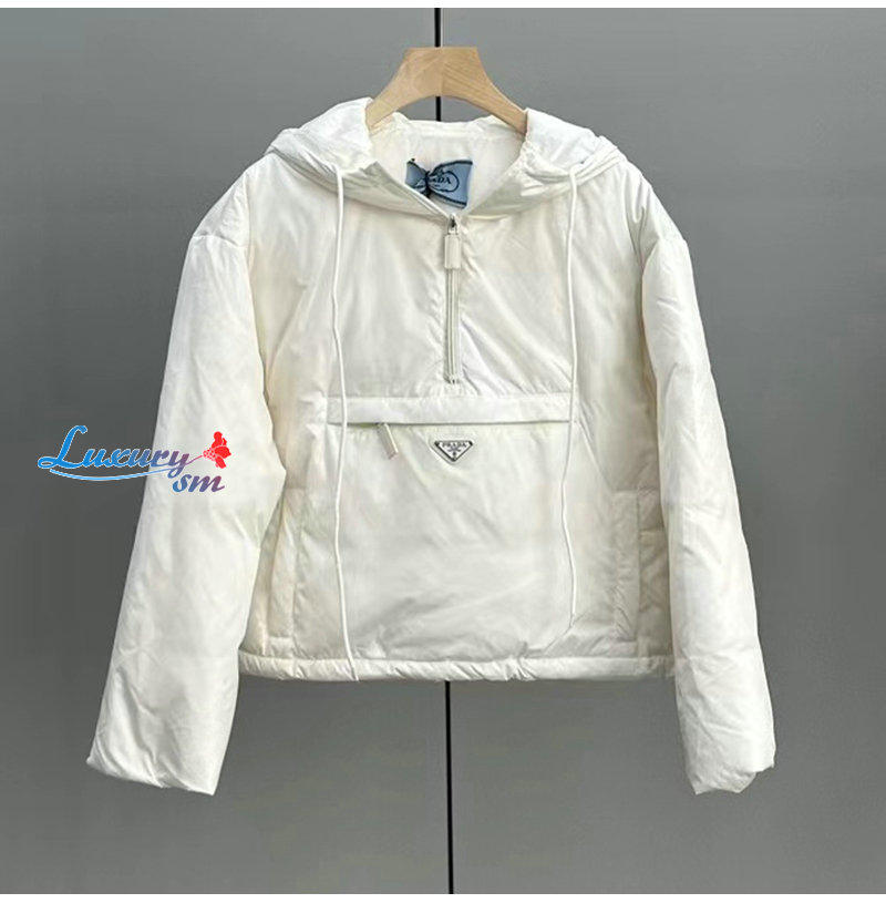PRADA-08278 프라다 화이트 트라이앵글 로고 다운 후드 여성용