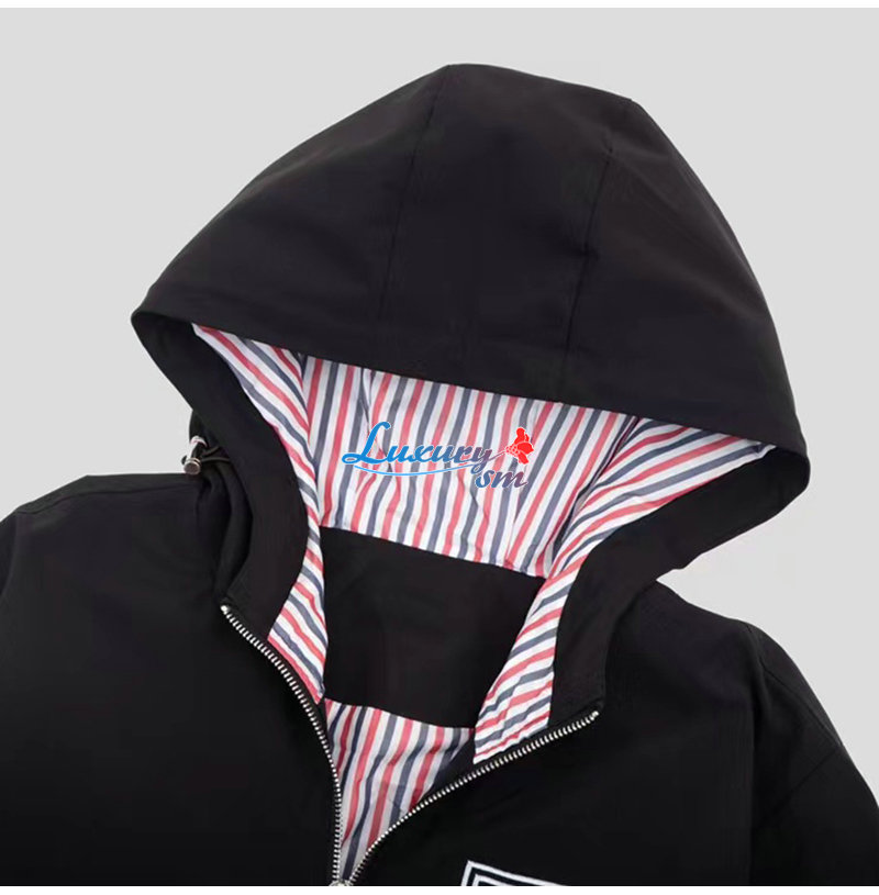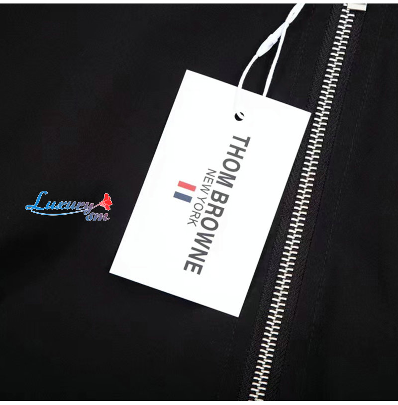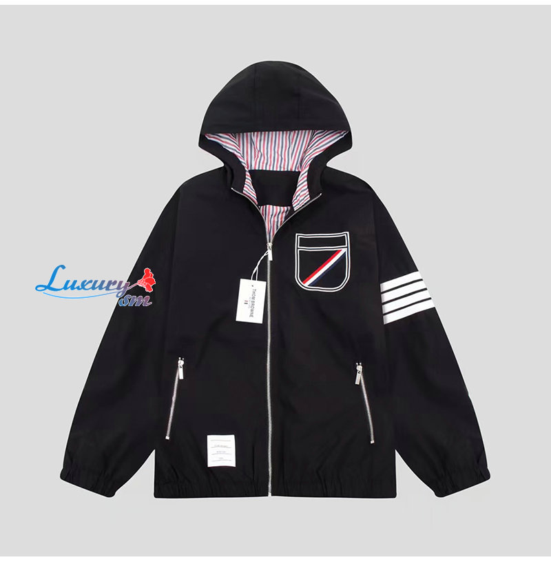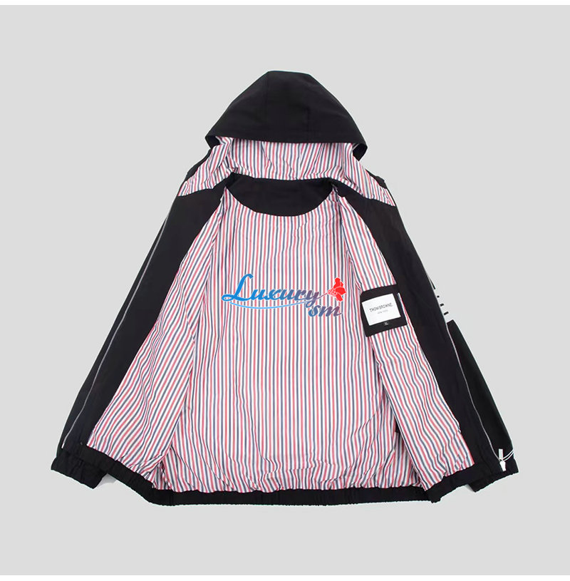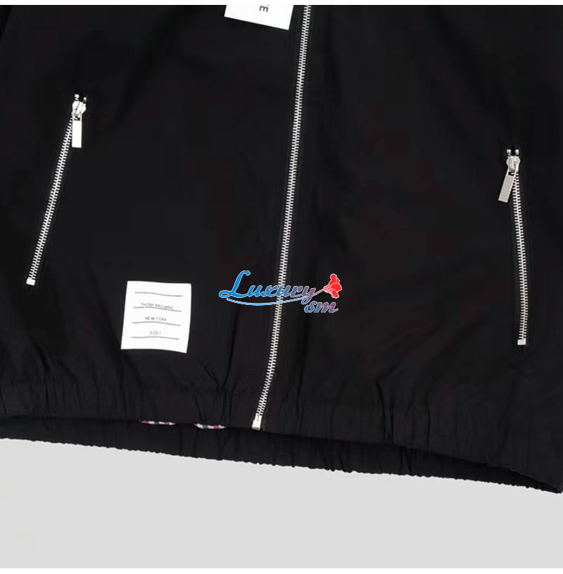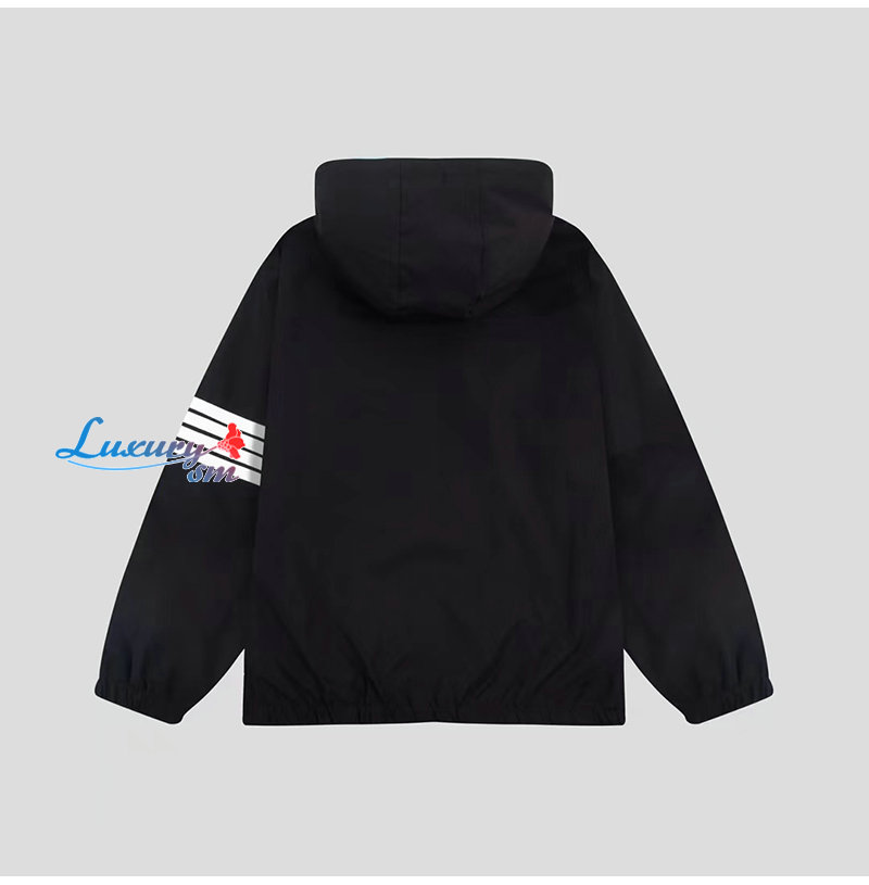 THOM BROWNE-08291 톰 브라운 블랙 스트라이프 장식 바람막이 후드 재킷 남성용