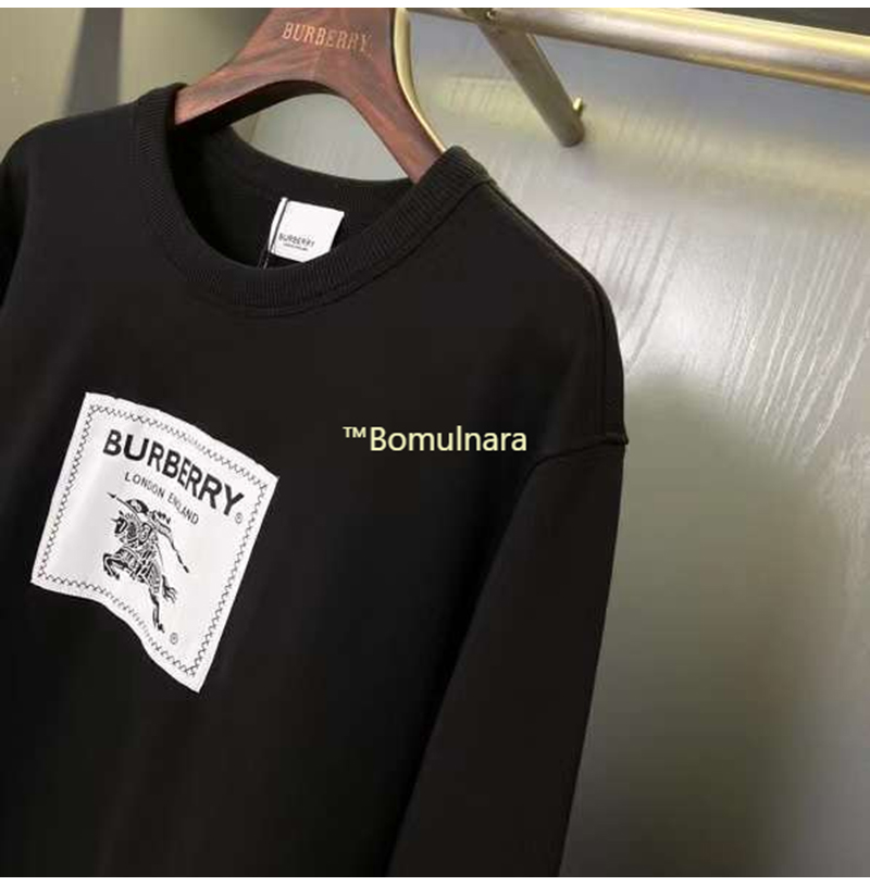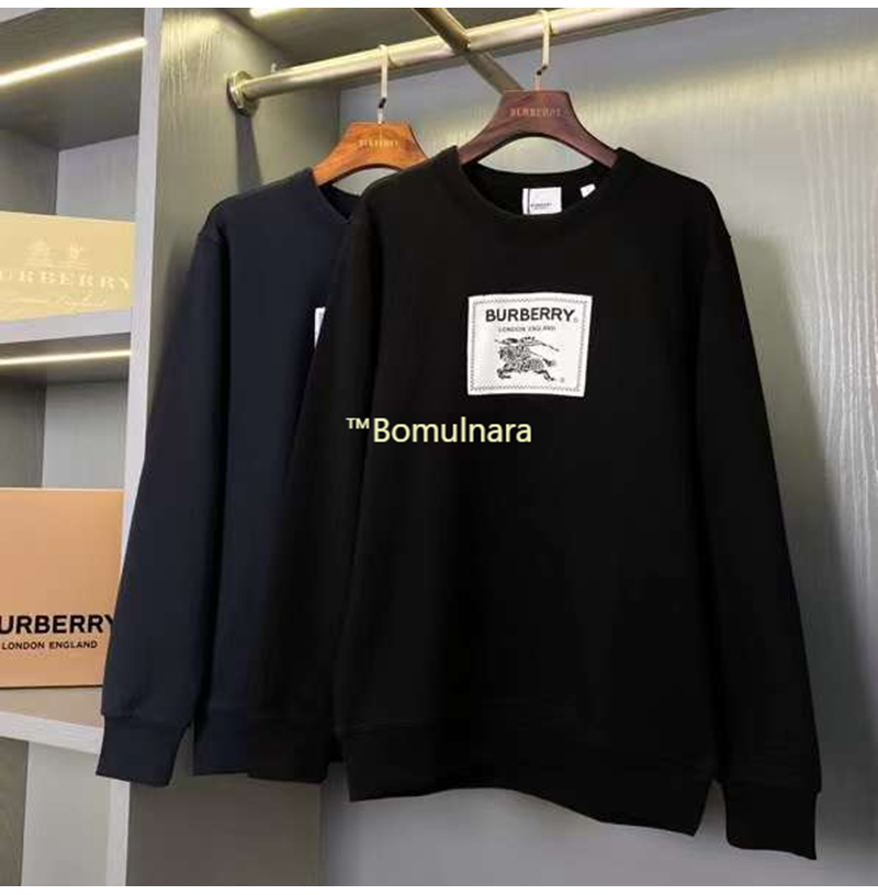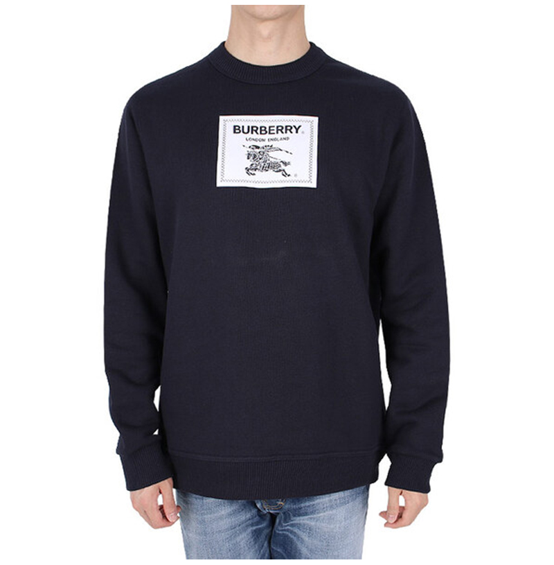 BURBERRY-80654 버버리 블랙 아플리케 패치 프로섬 레이블 코튼 스웨트셔츠 남성용