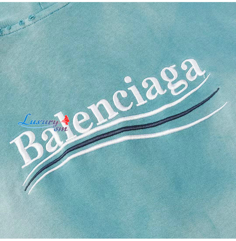 BALENCIAGA-09031 발렌시아가 블루 아플리케 장식 워싱 빈티지 후드 재킷 남여공용