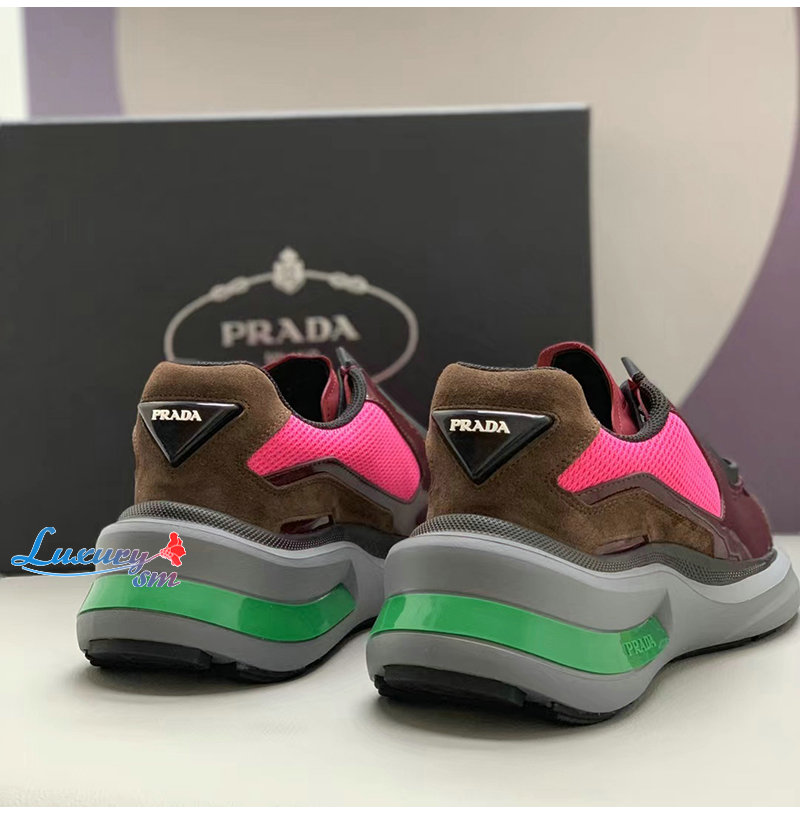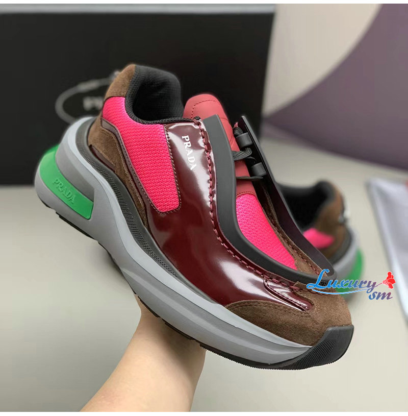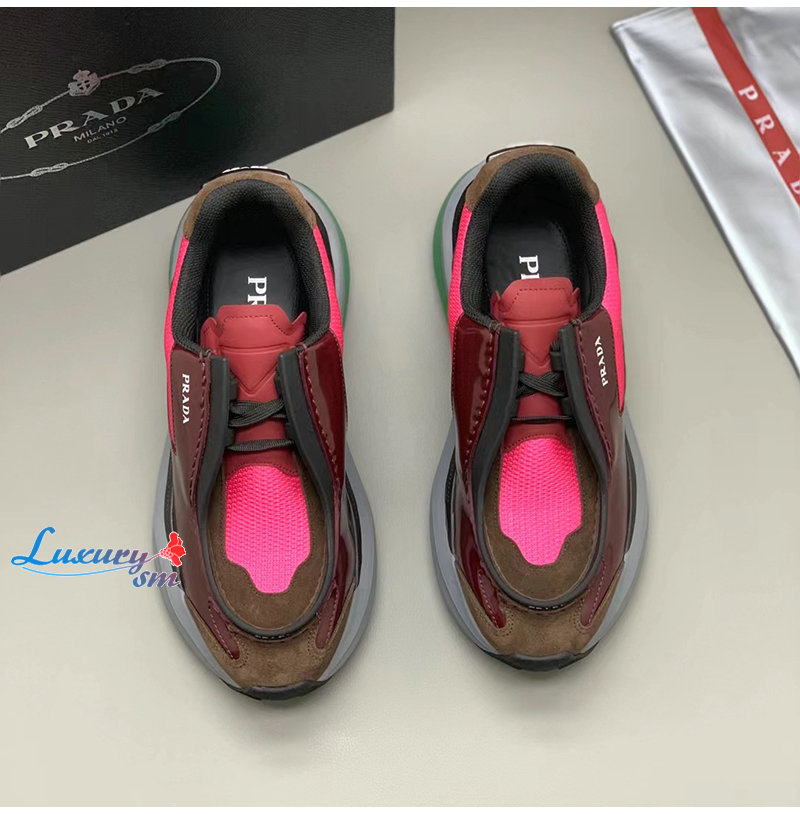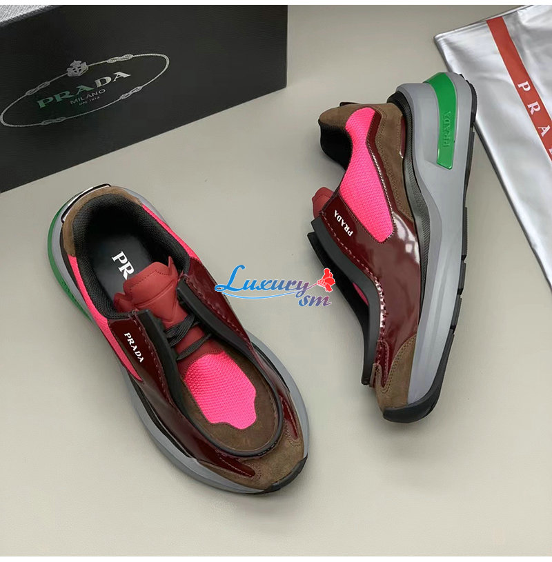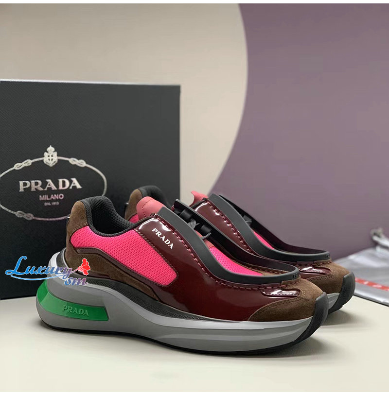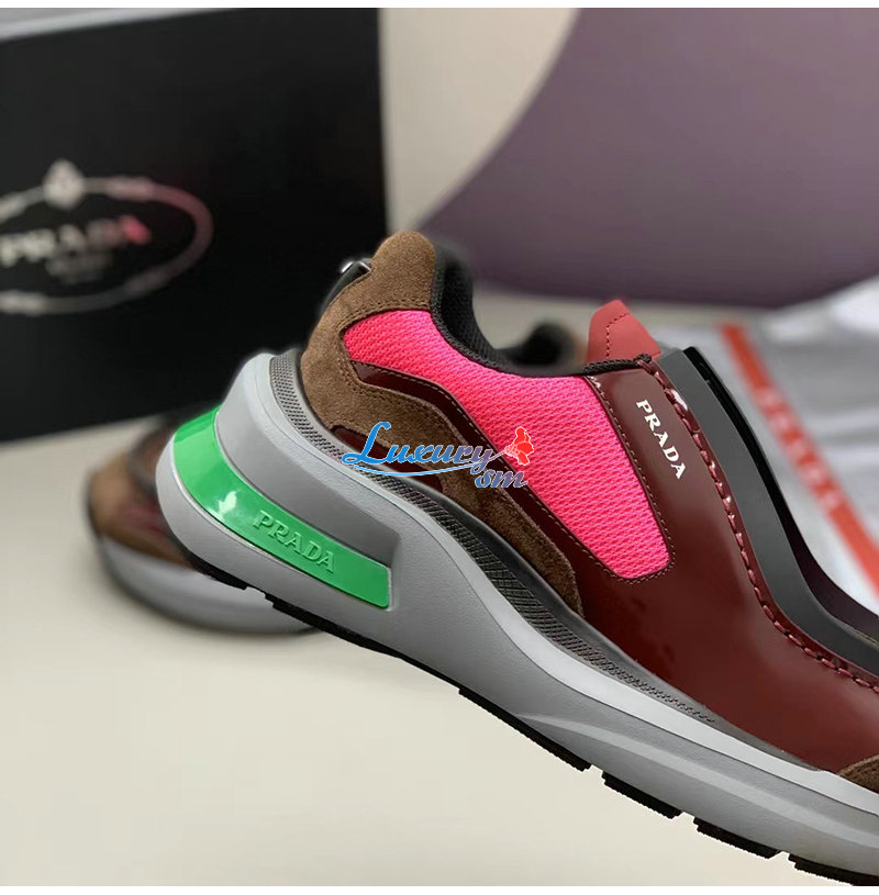 PRADA-2EG424 프라다 버건디 브러시드 가죽 스니커즈 남성용