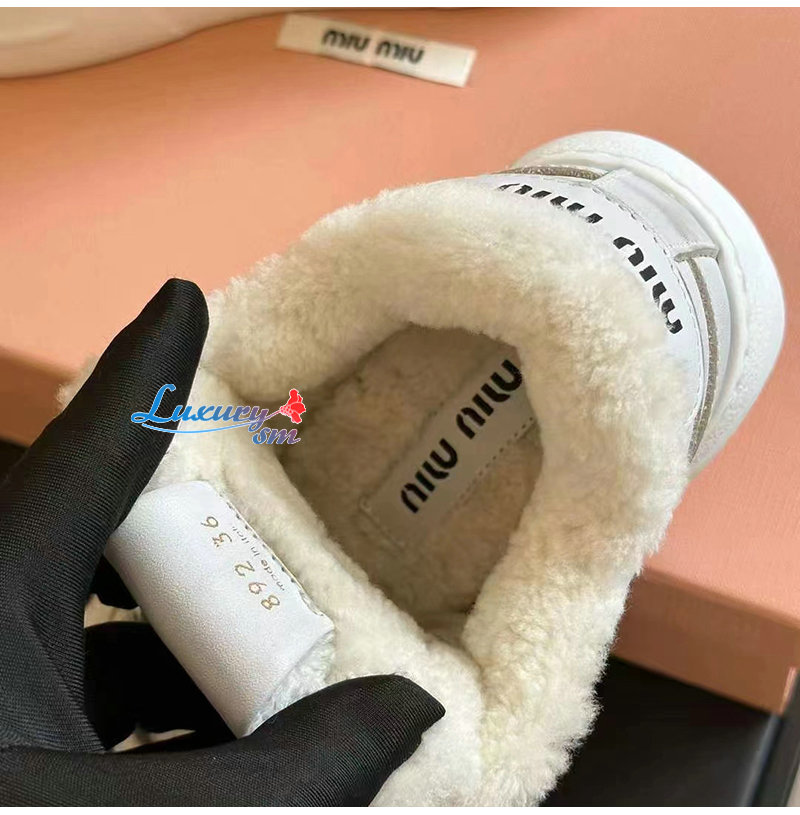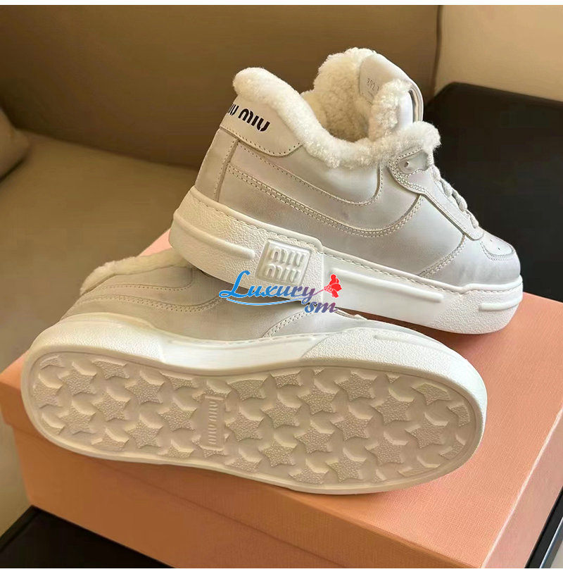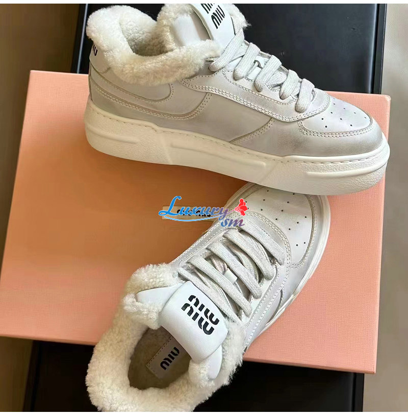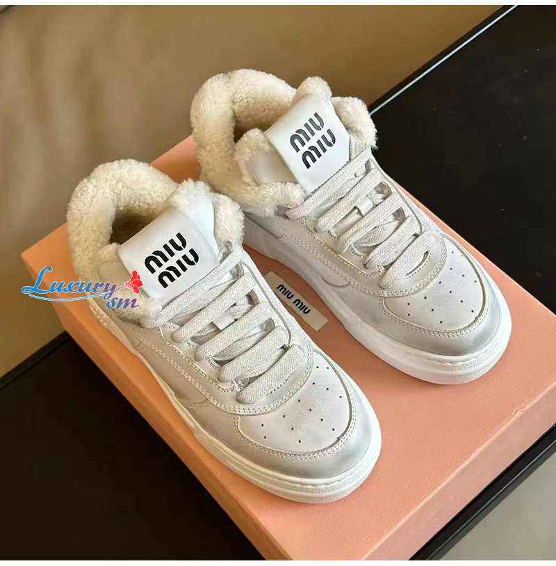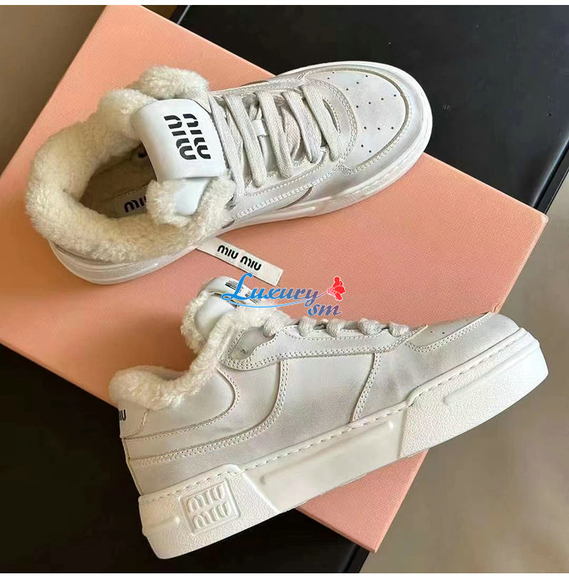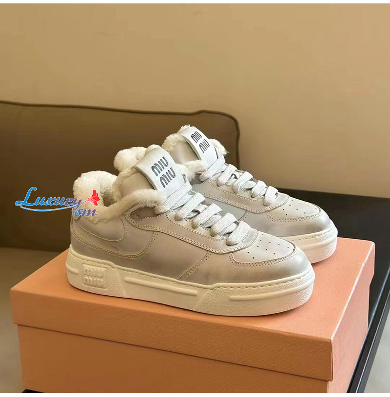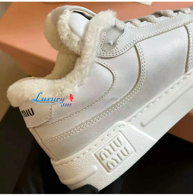 MIUMIU-5E892D 미우미우 화이트 스크린 프린트 로고 스니커즈 여성용