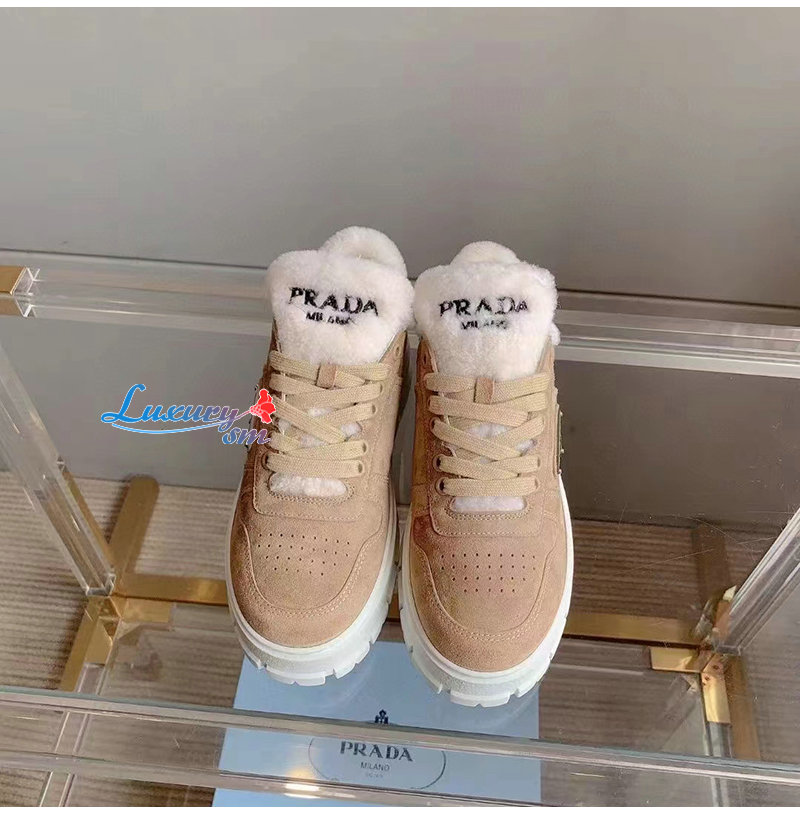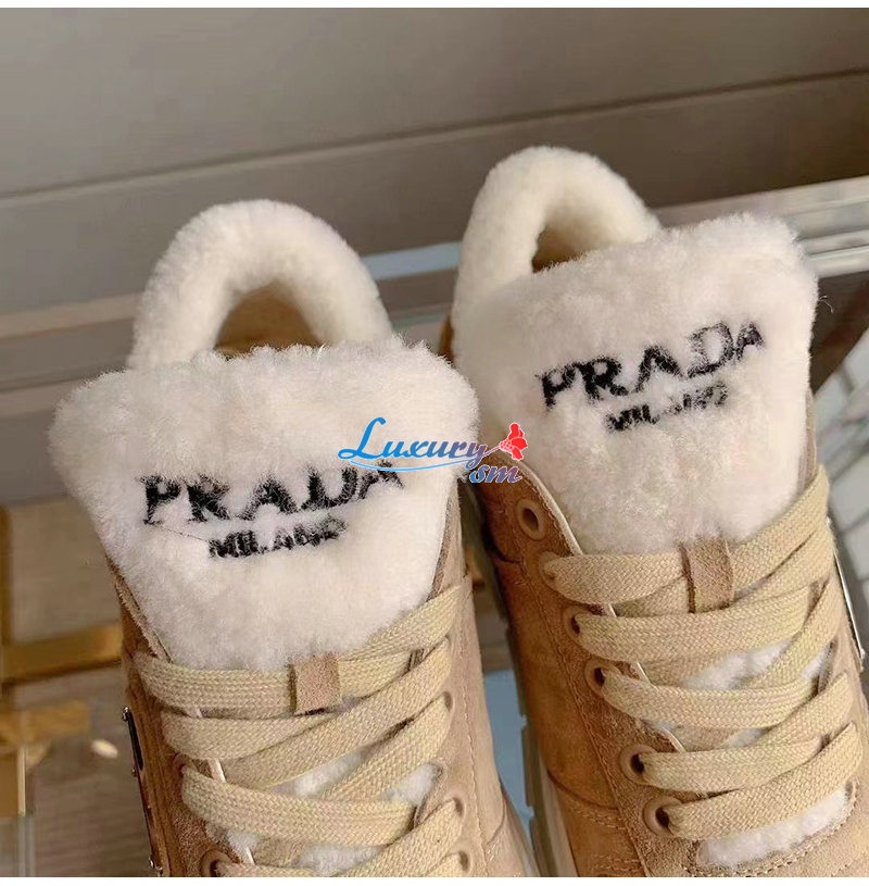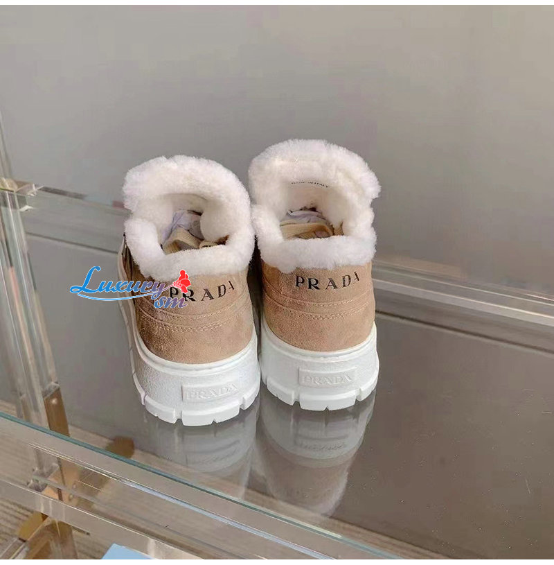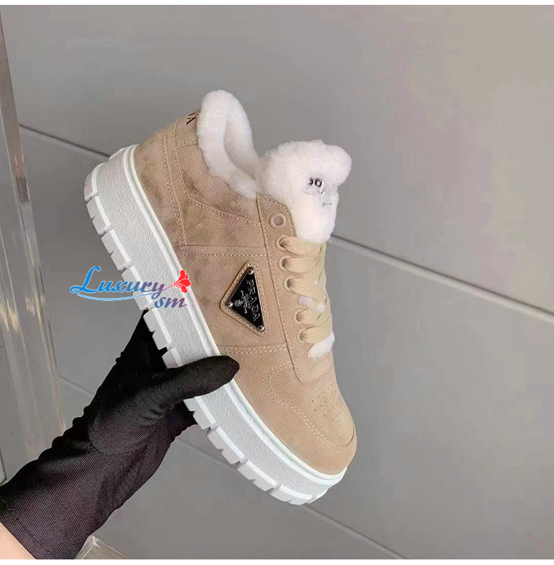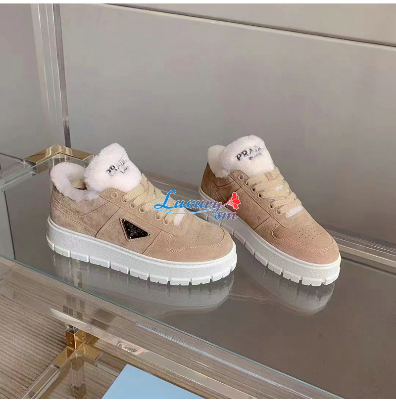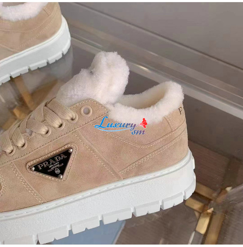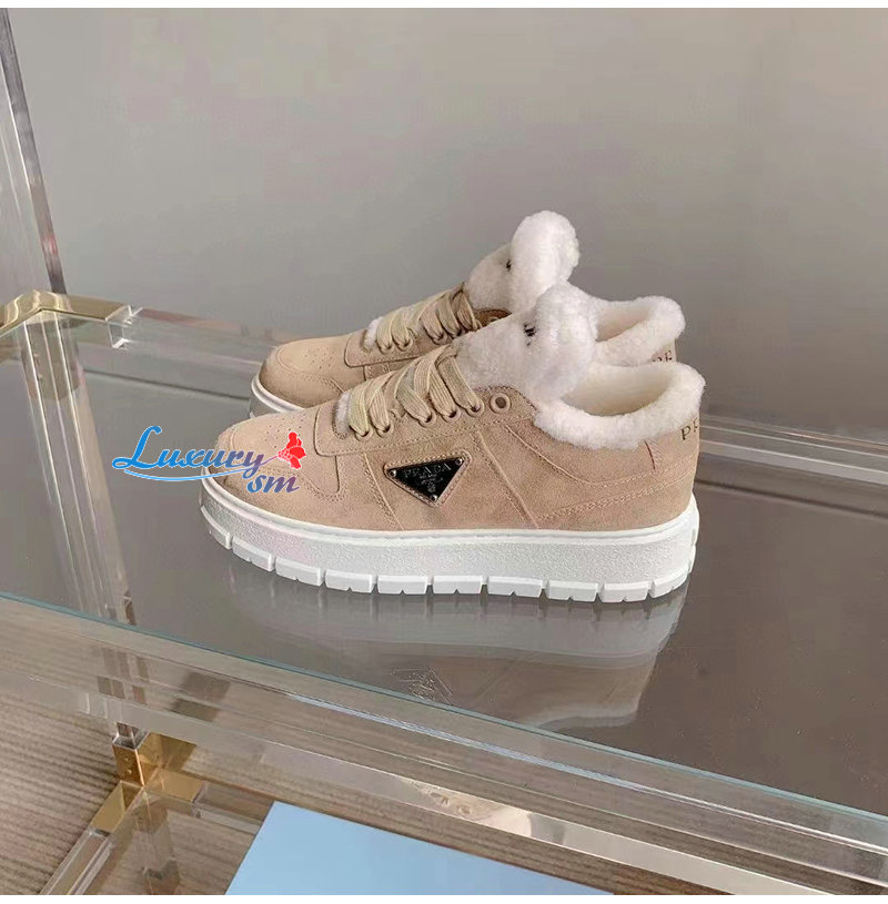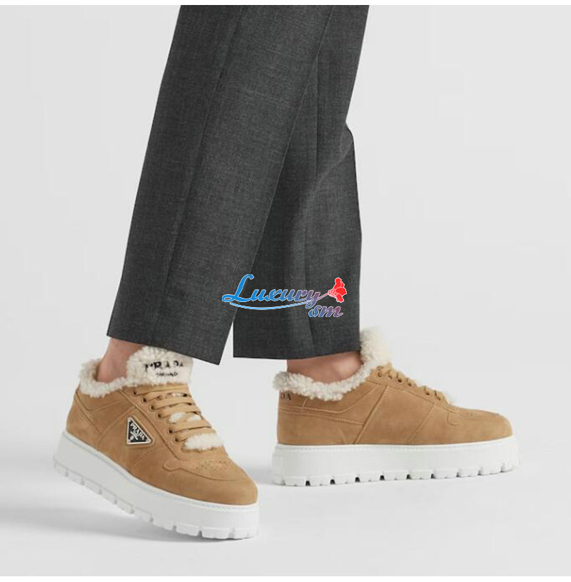 PRADA-1E947M 프라다 에크루 스웨이드 시어링 스니커즈 여성용