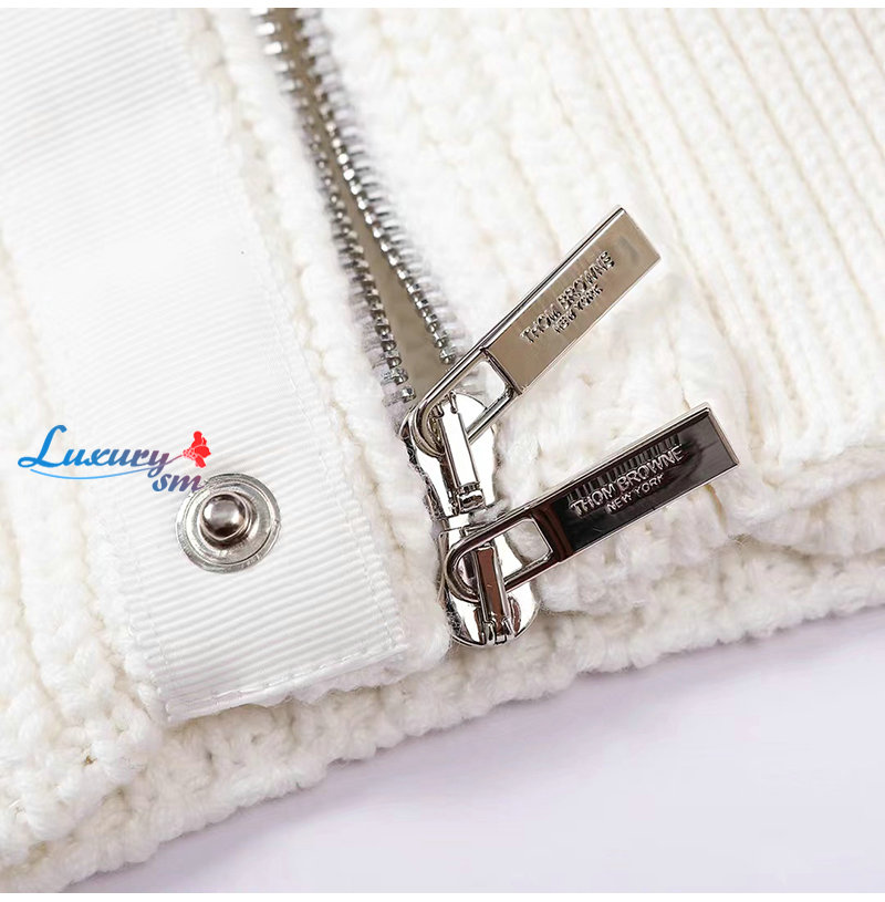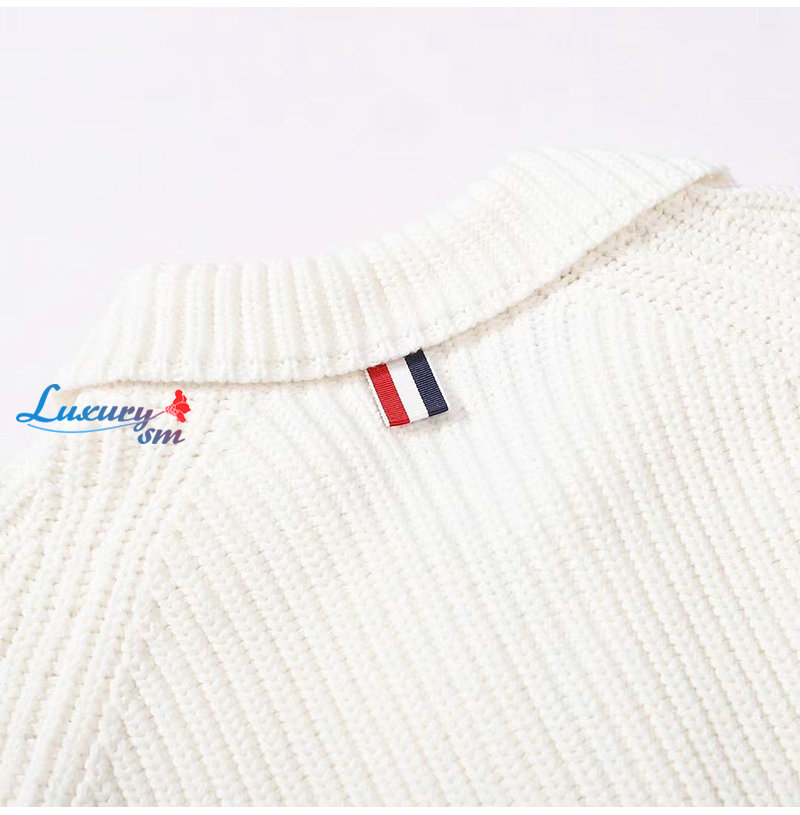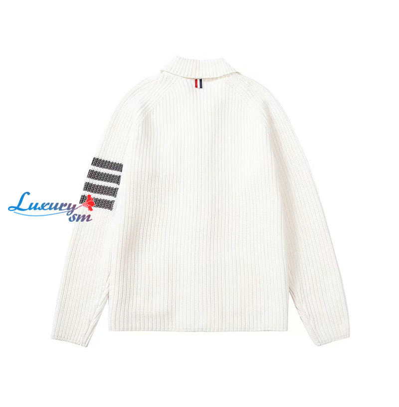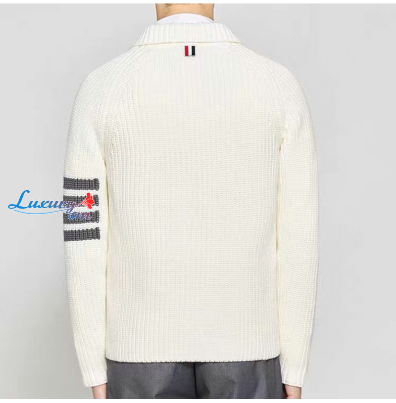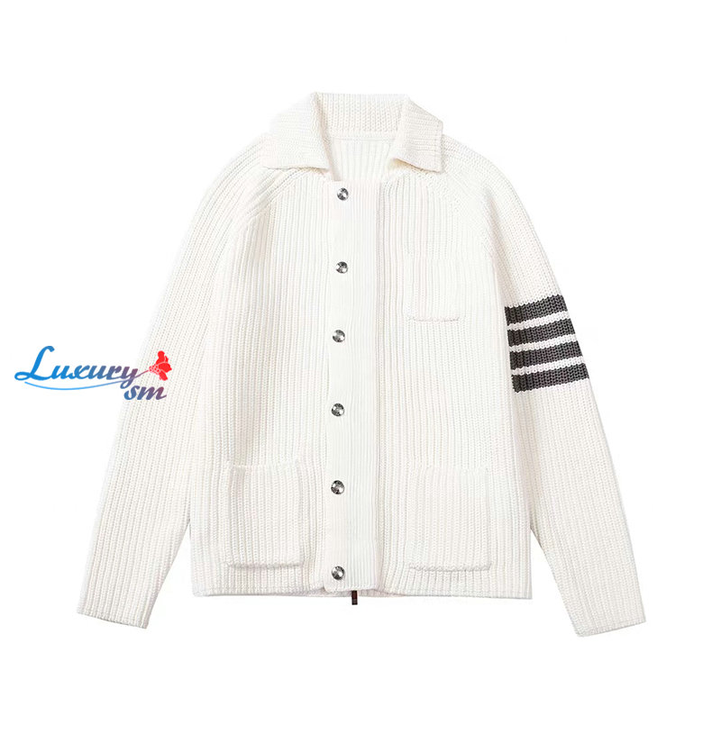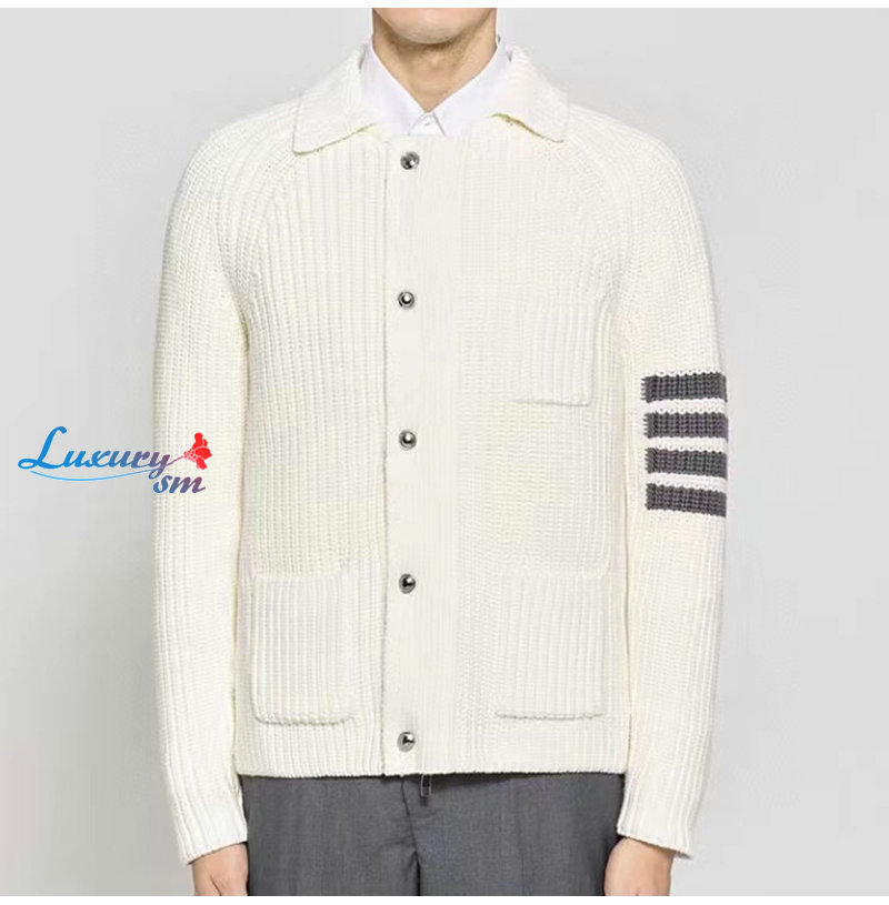 THOM BROWNE-09122 톰 브라운 화이트 스트라이프 장식 니트 재킷 남성용