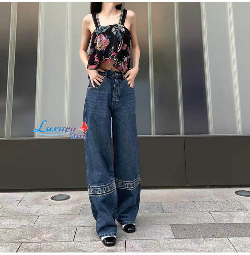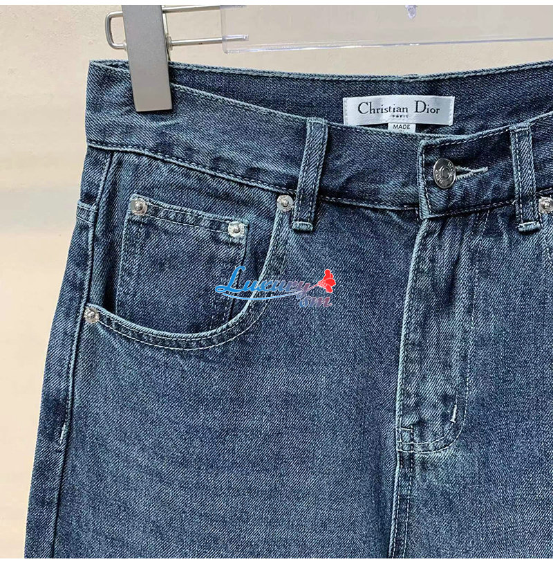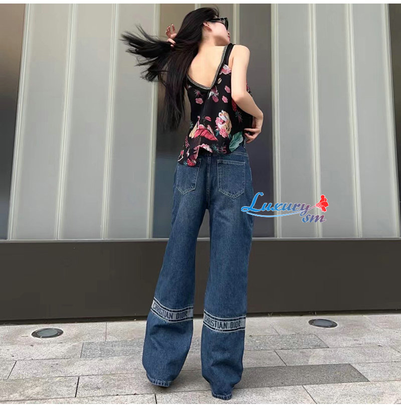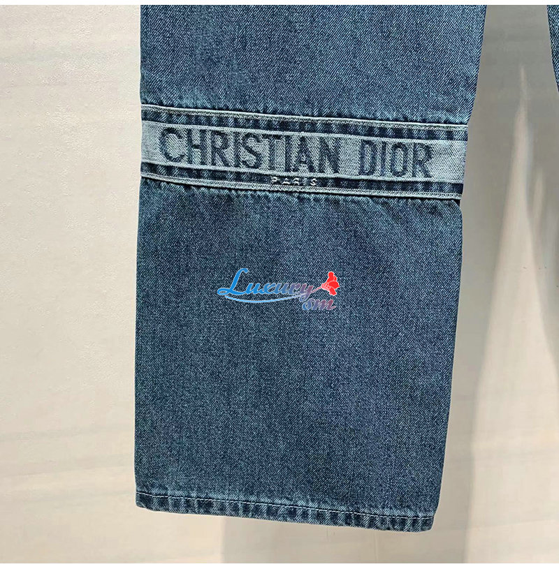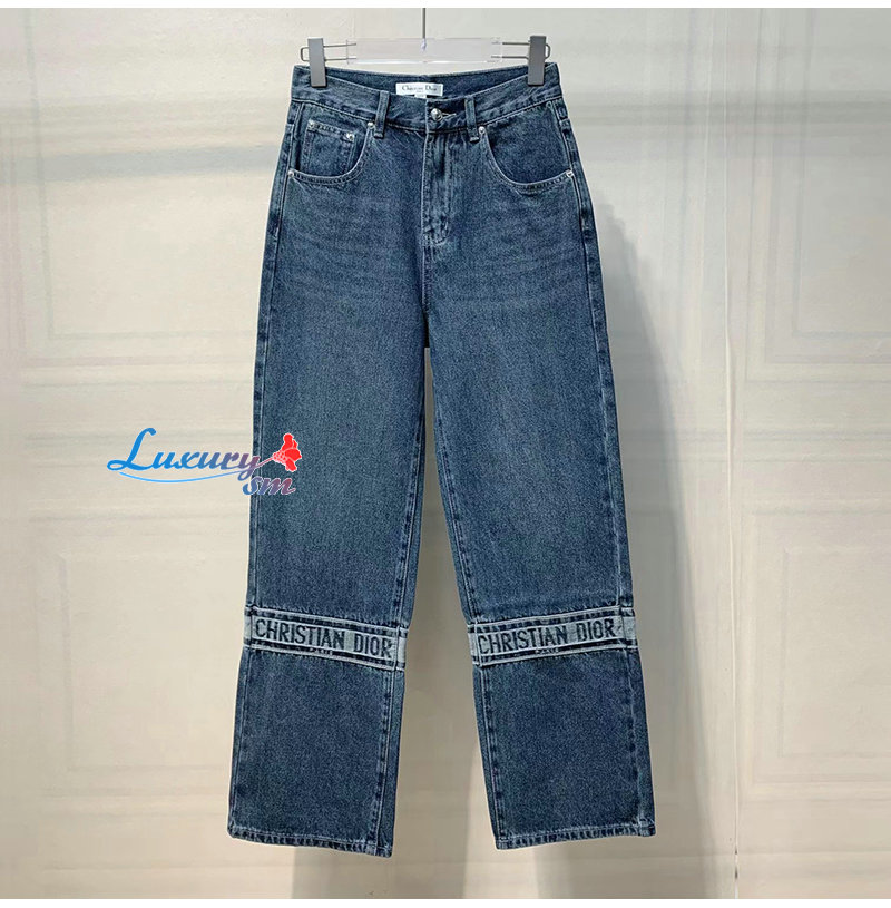 DIOR-091512 디올 블루 스트라이프 장식 청바지 여성용