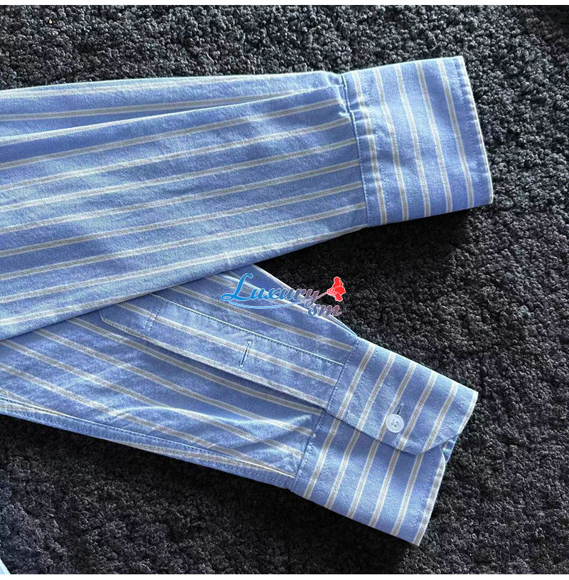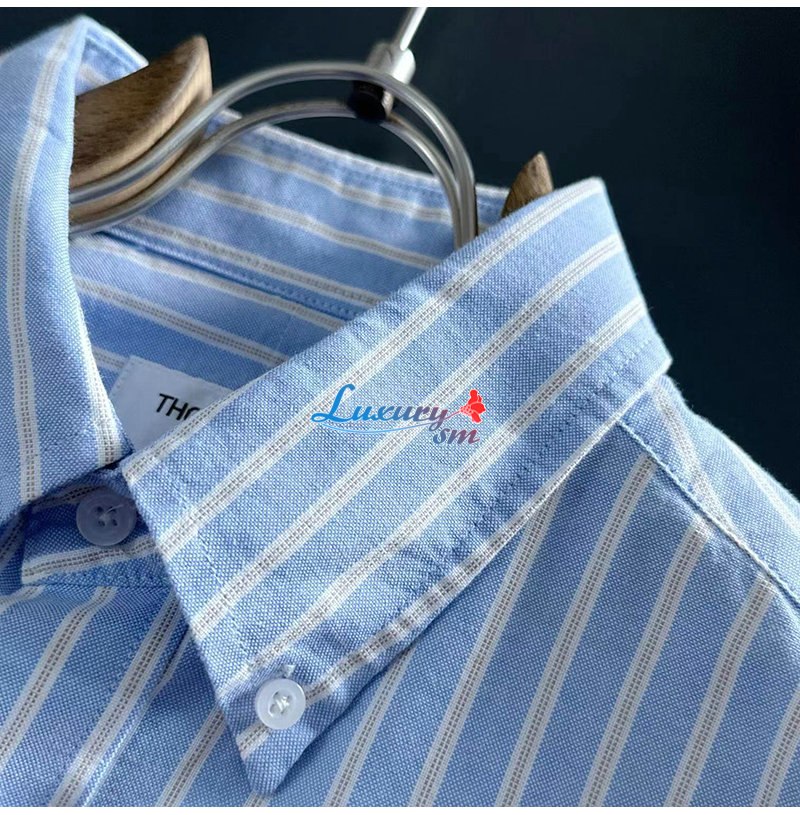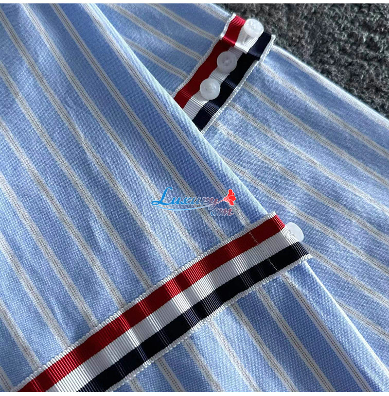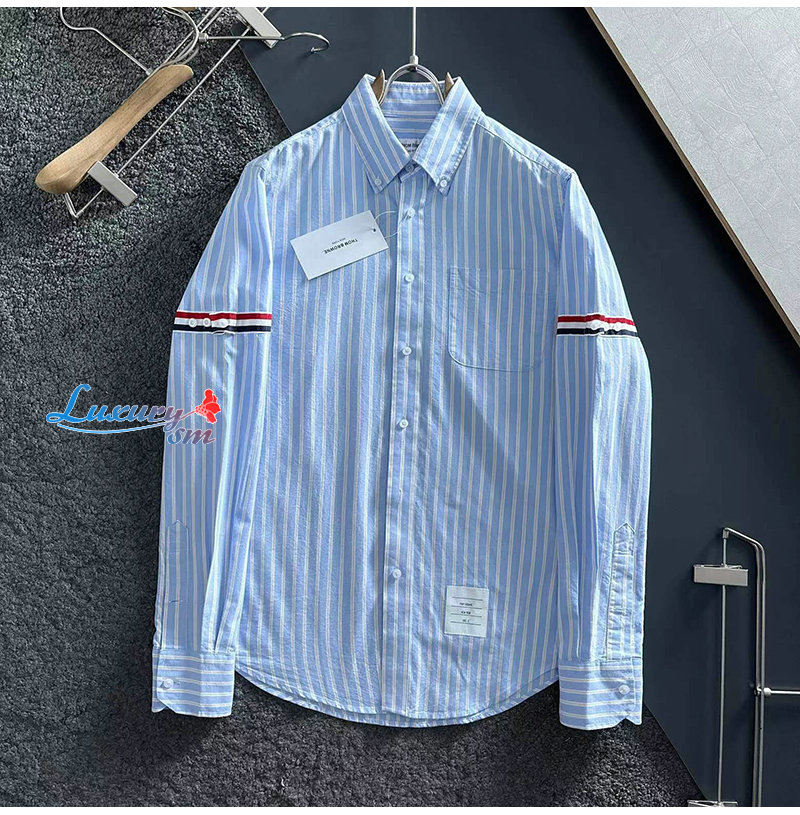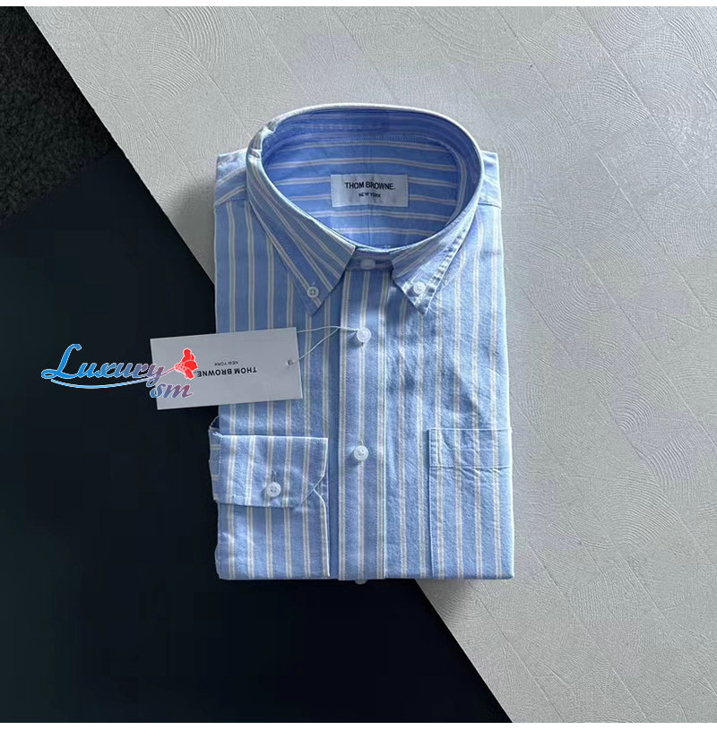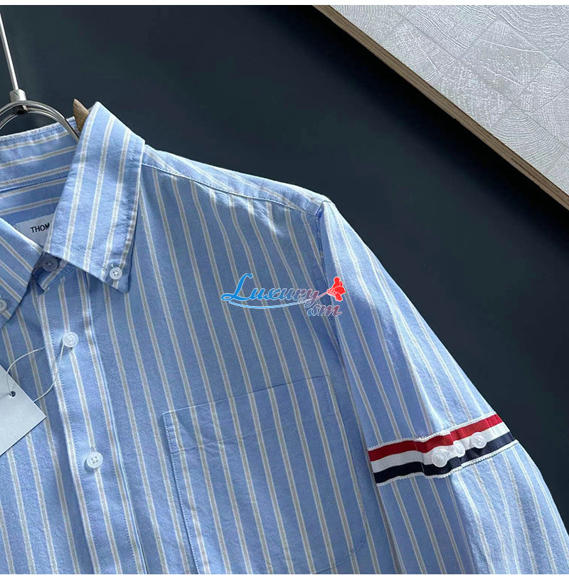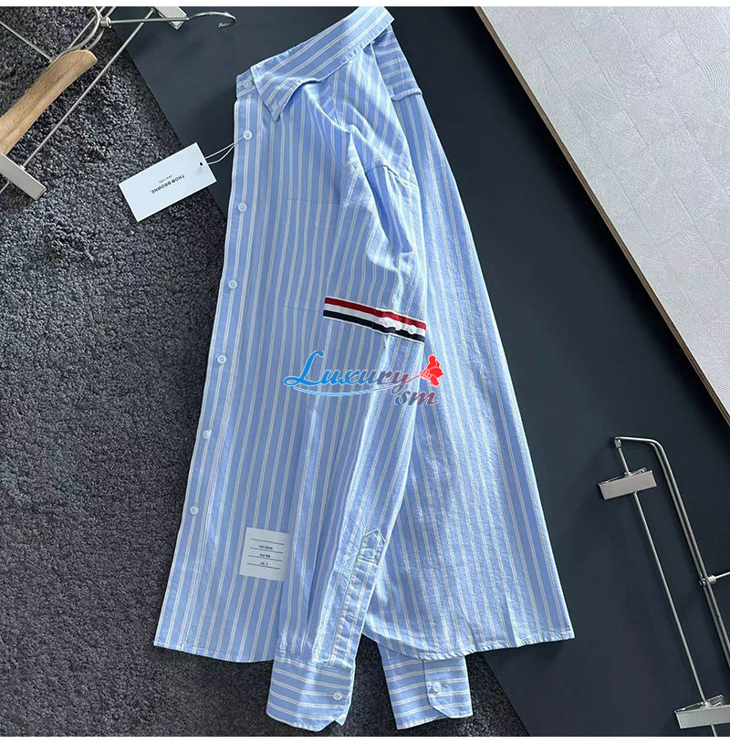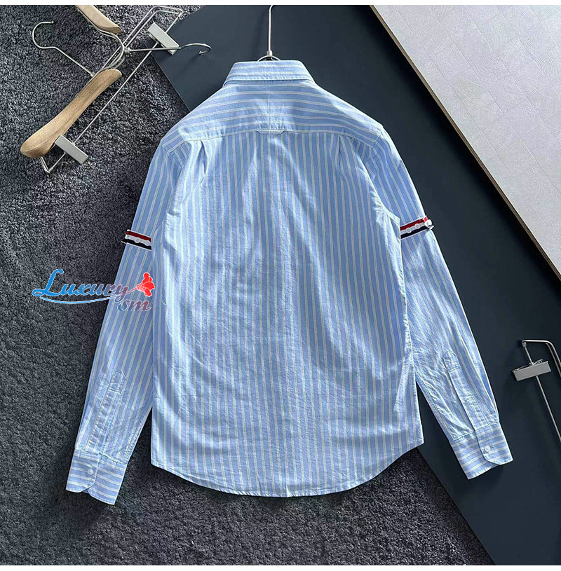 THOM BROWNE-09214 톰 브라운 블루 스트라이프 장식 셔츠 남성용