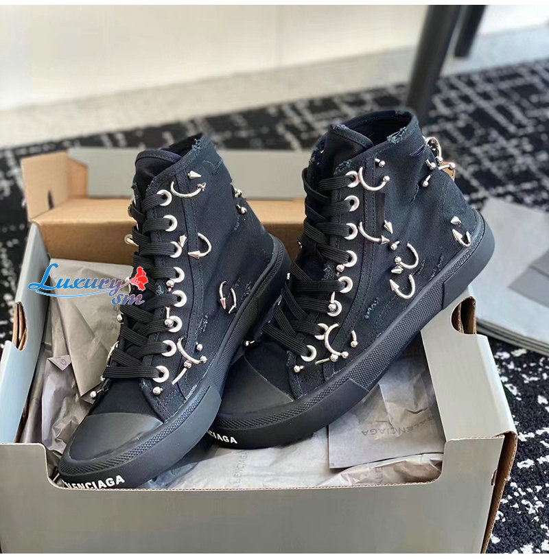 BALENCIAGA-688752 발렌시아가 블랙 PARIS HIGH TOP 피어싱 스니커즈 남여공용