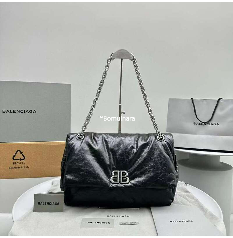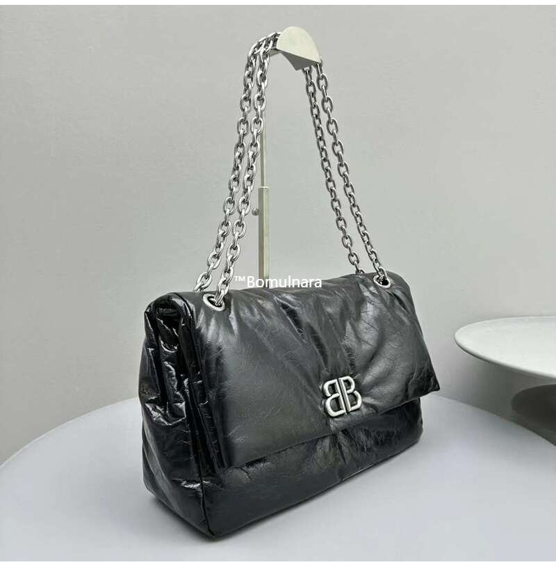 [스페셜오더]BALENCIAGA-765945 발렌시아가 블랙 MONACO 모나코 실버 체인 미디엄 숄더백 32cm