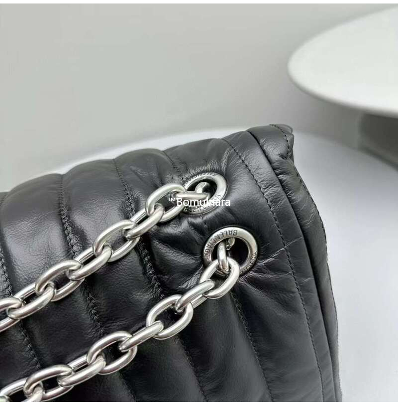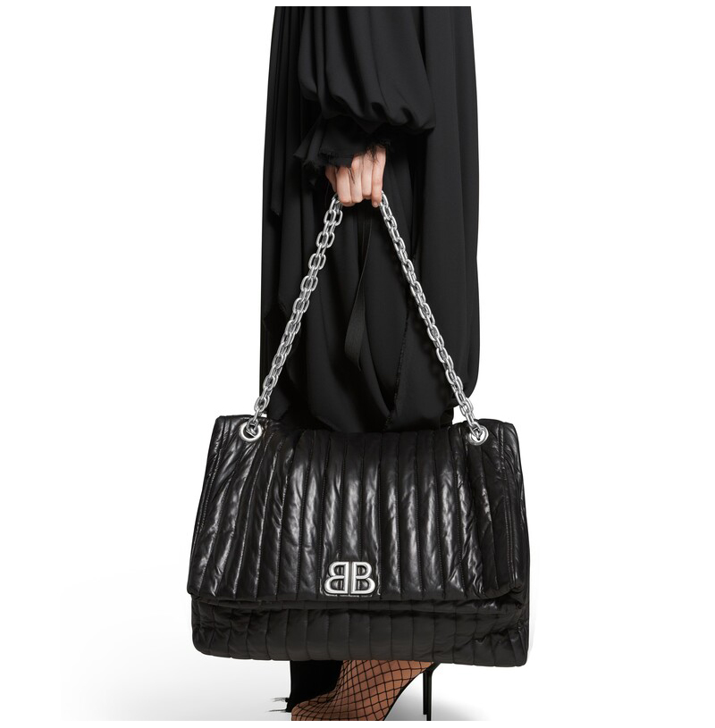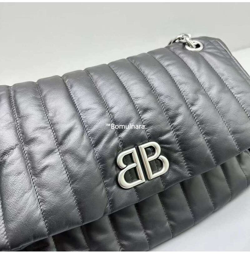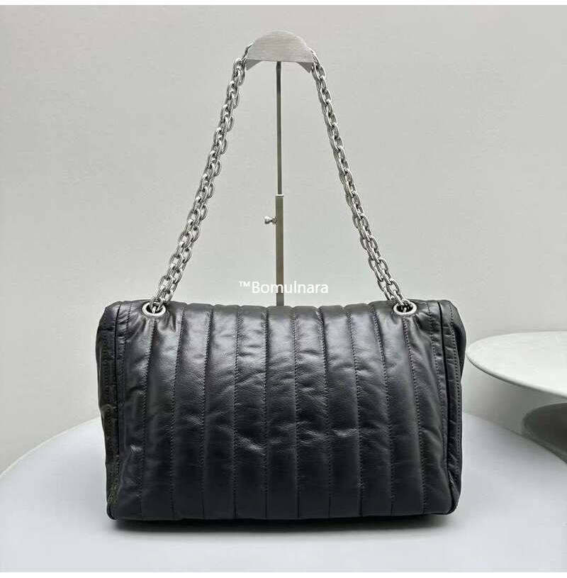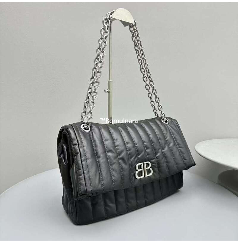 [스페셜오더]BALENCIAGA-765933 발렌시아가 블랙 퀼트 MONACO 모나코 실버 체인 라지 숄더백 43cm
