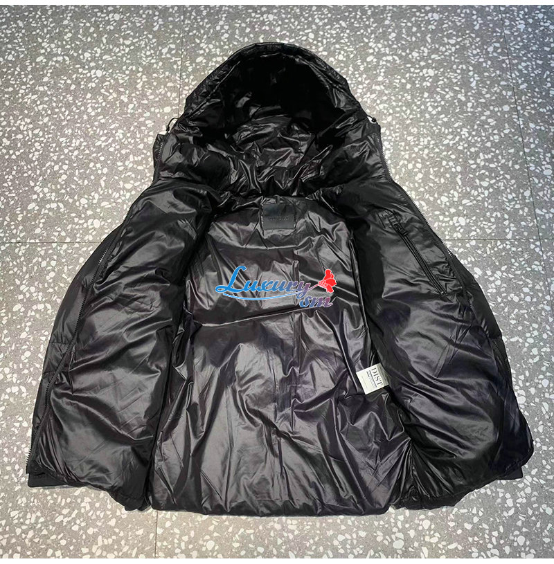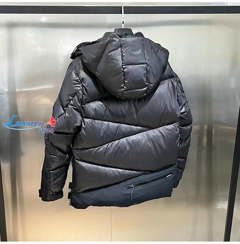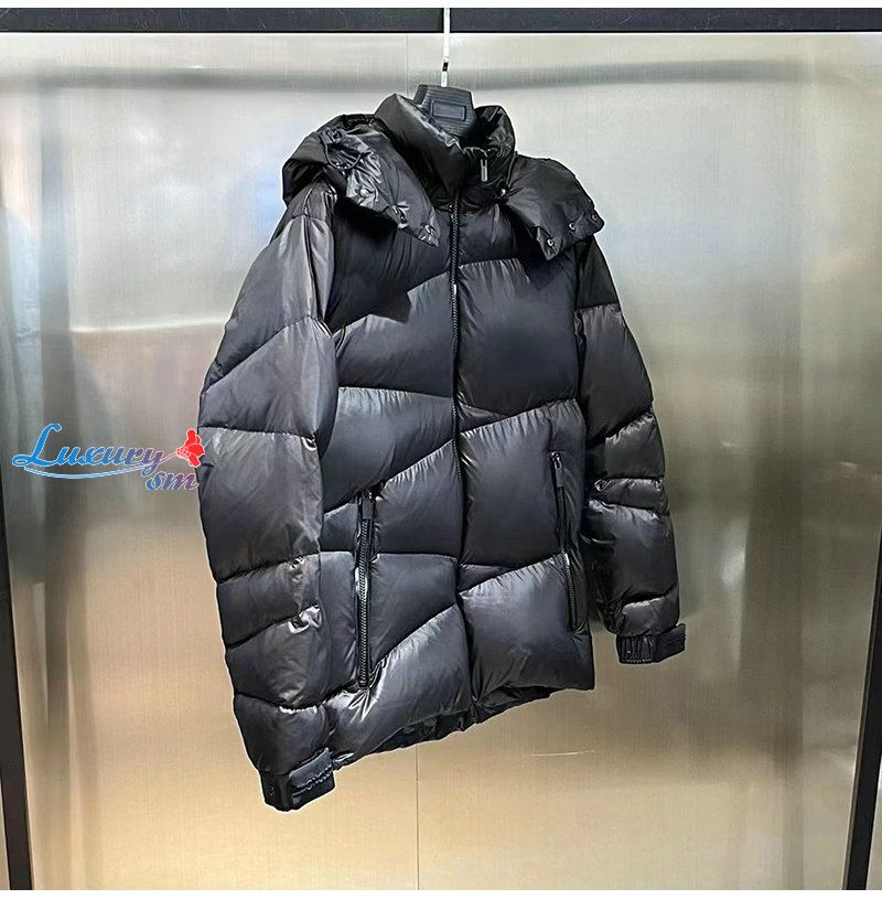 다운재킷은 날렵한 기하학적 패턴의 퀼팅이 돋