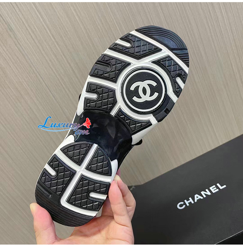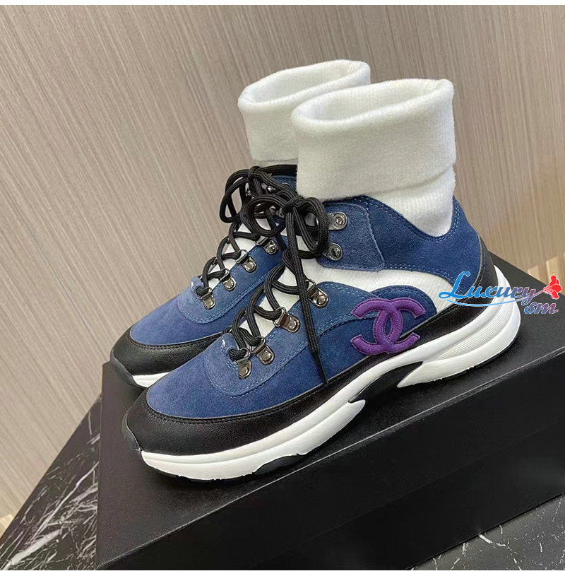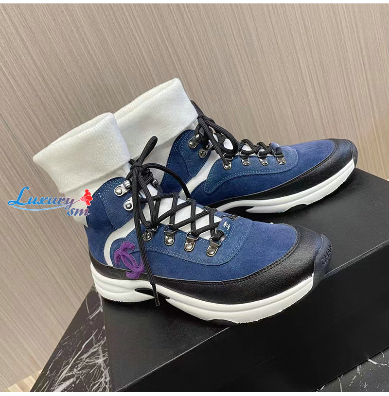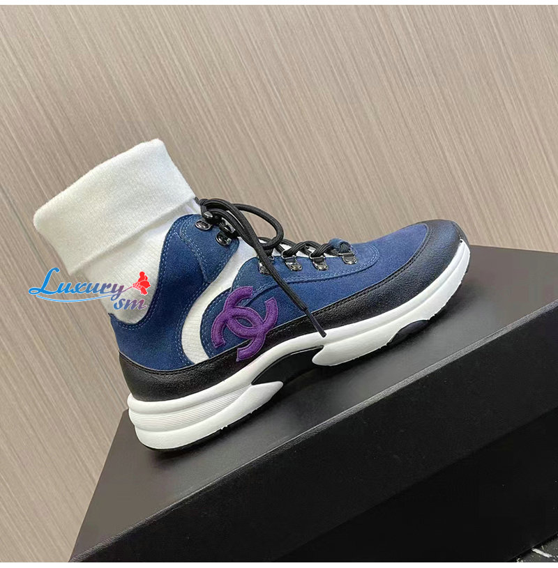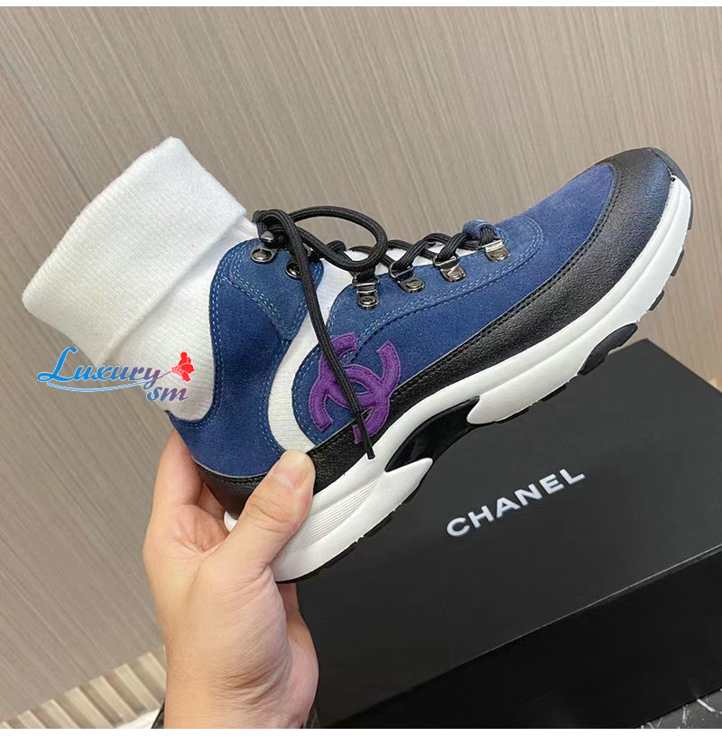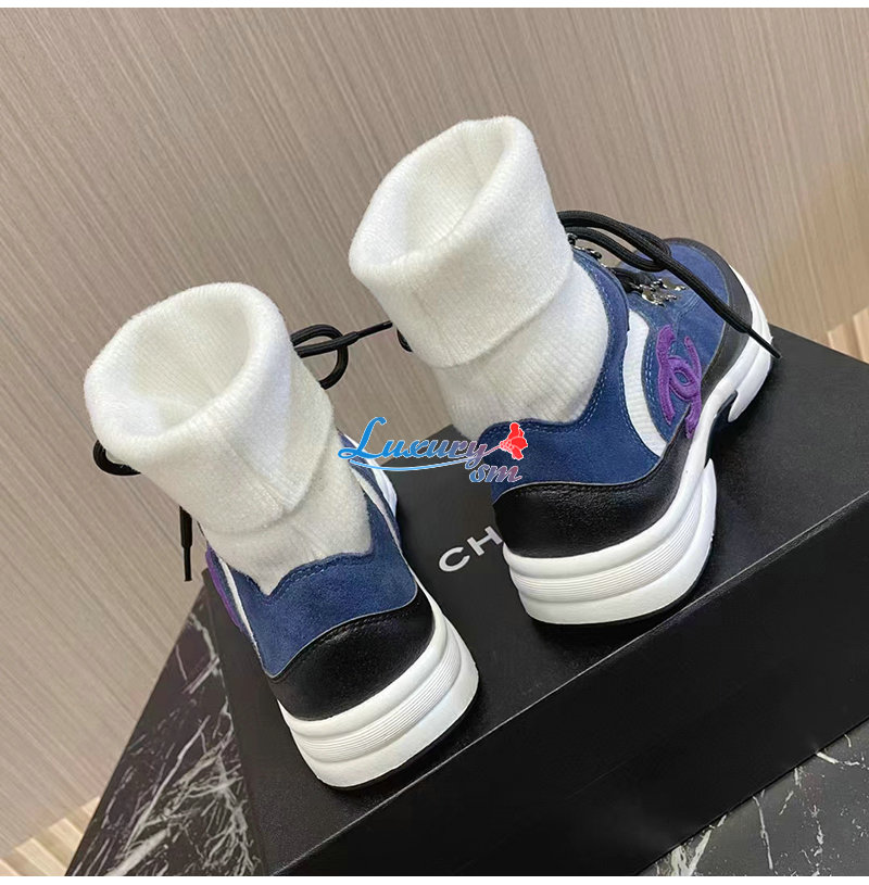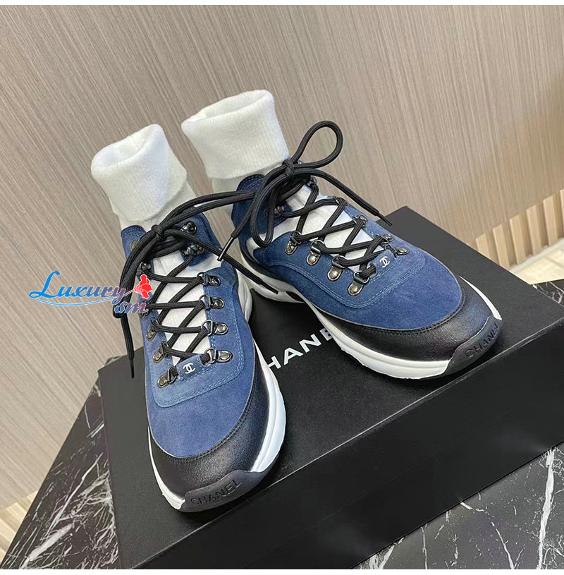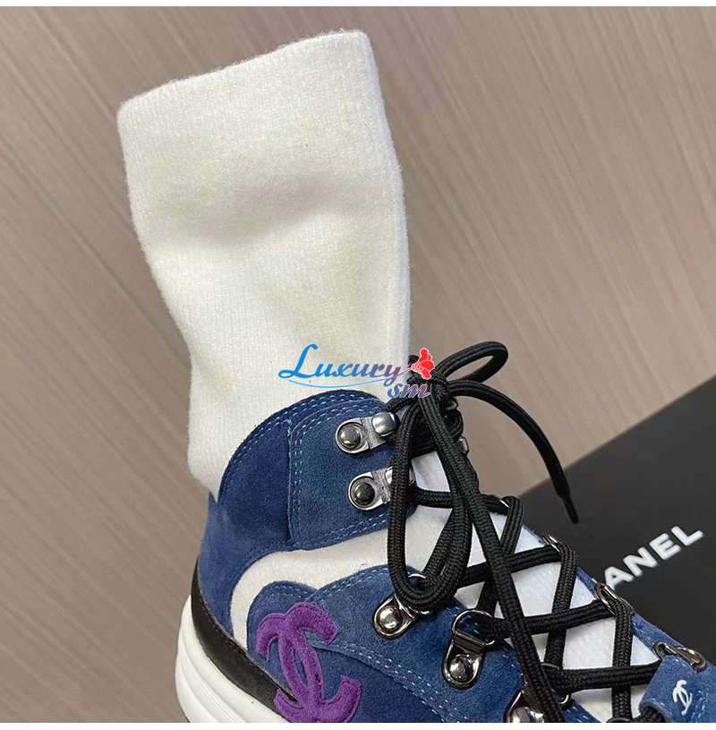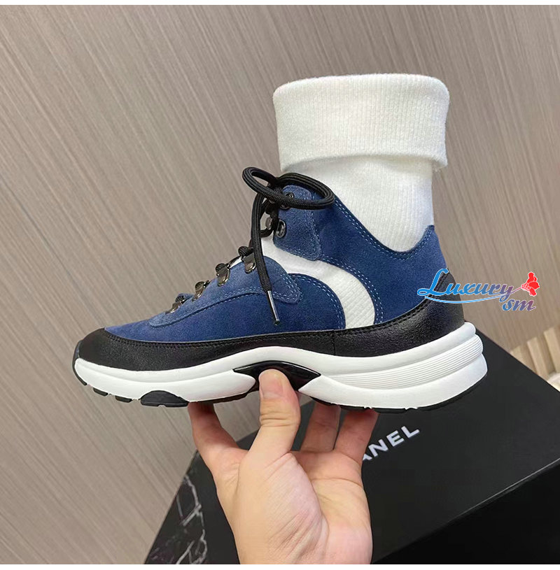 CHANEL-G45204 샤넬 네이비 스웨이드 카프스킨 니트 스니커즈 여성용