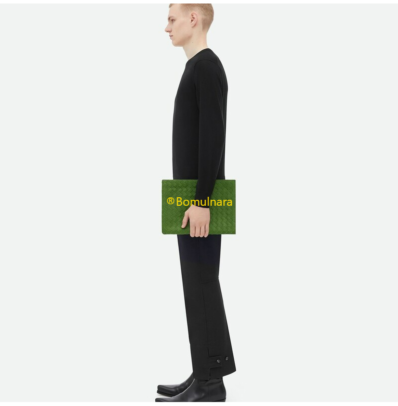 [스페셜오더]BOTTEGA VENETA-607479 보테가 베네타 블랙/그린 인트레치아토 하프 지퍼 파우치 33cm 가격 : 400,000원