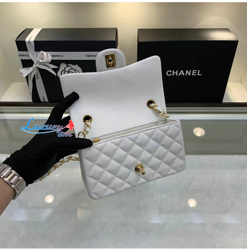 [스페셜오더]CHANEL-A69900 샤넬 화이트 클래식 캐비어 골드 메탈 뉴 미니 플랩백