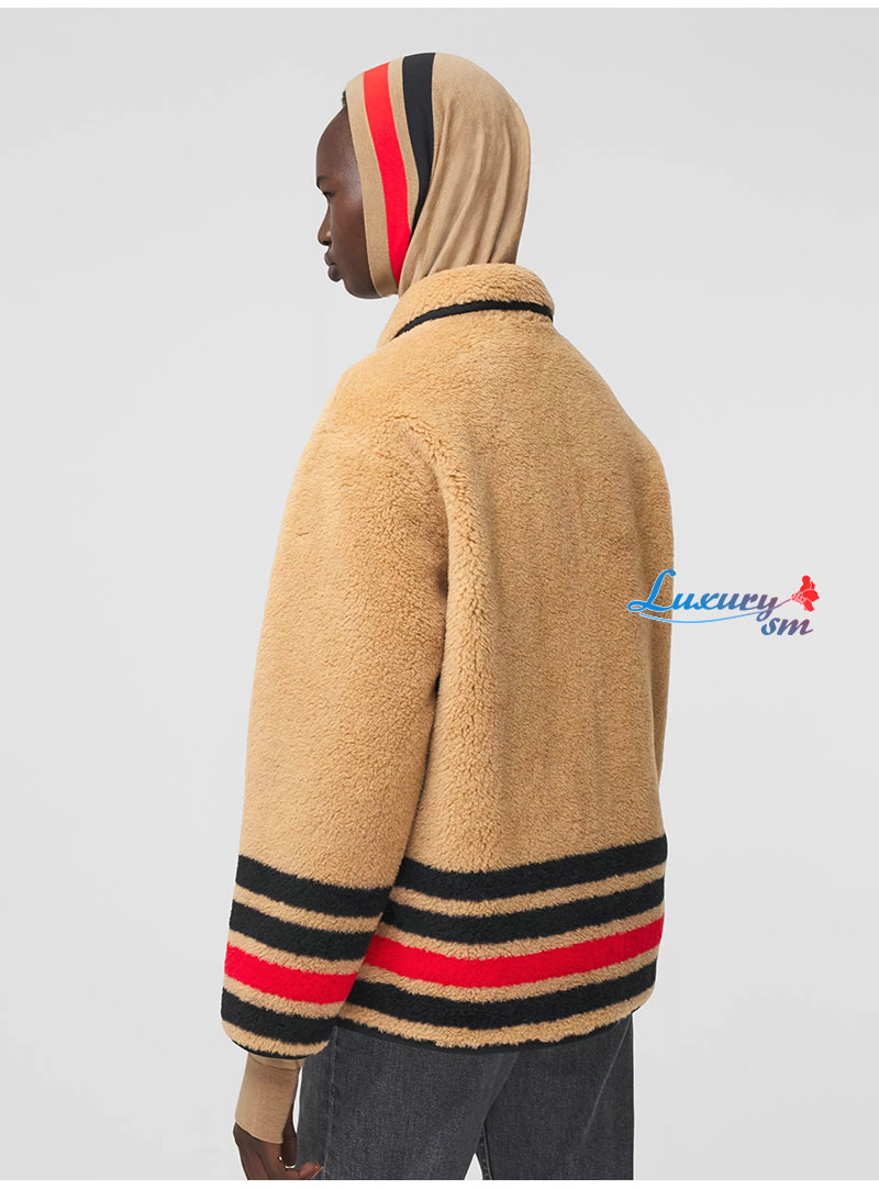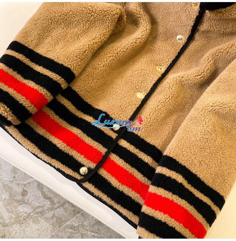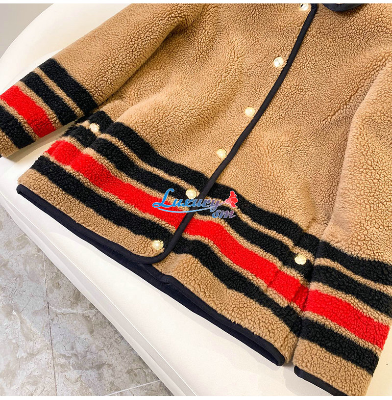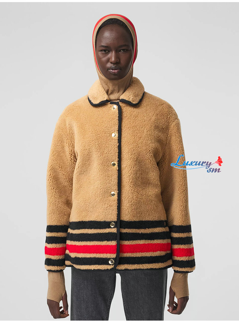 BURBERRY-11128 버버리 브라운 스트라이프 장식 시어링 재킷 여성용