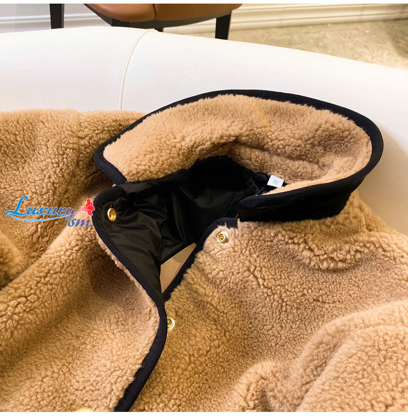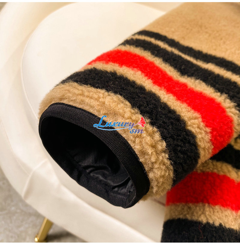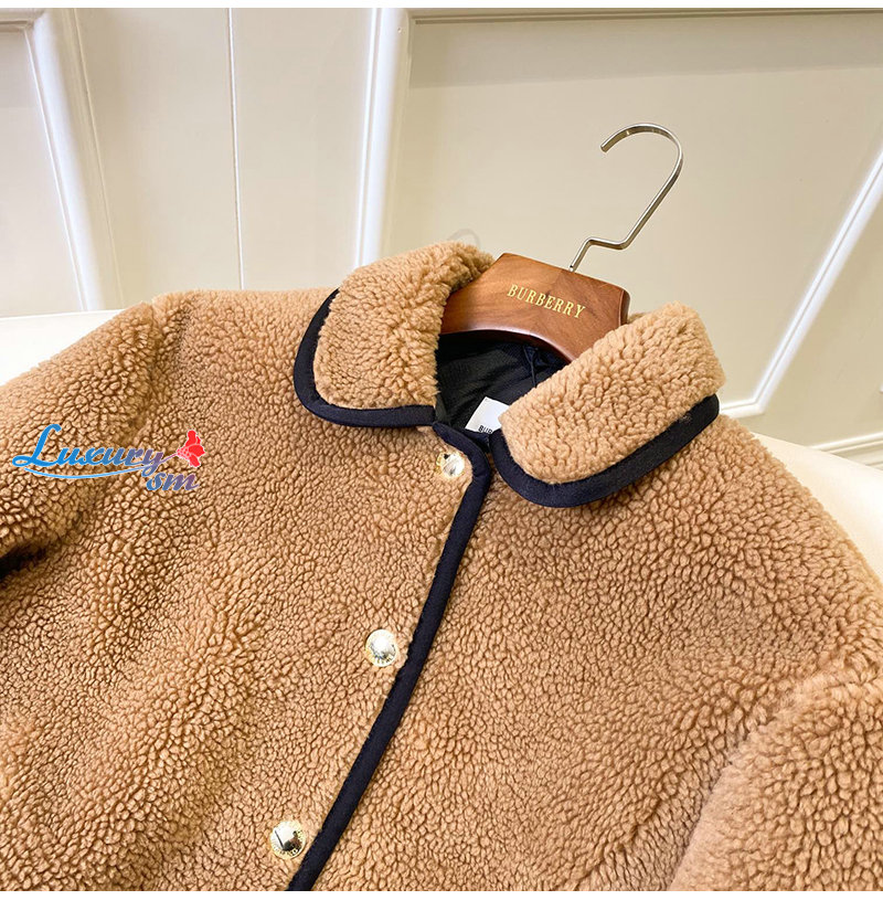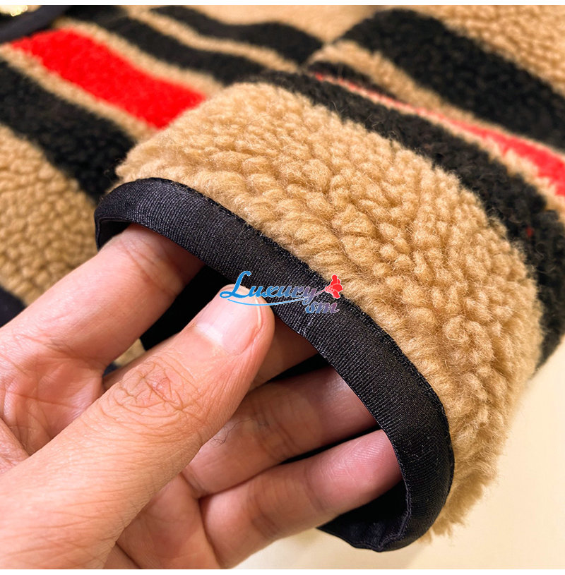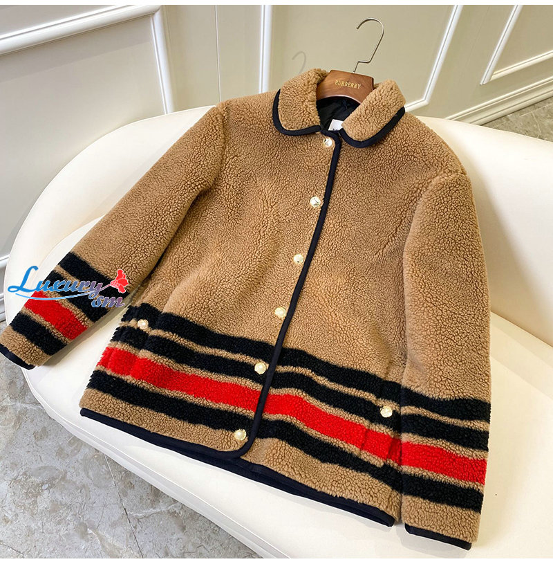 BURBERRY-11128 버버리 브라운 스트라이프 장식 시어링 재킷 여성용