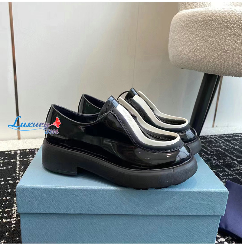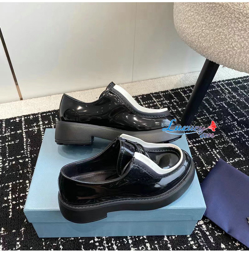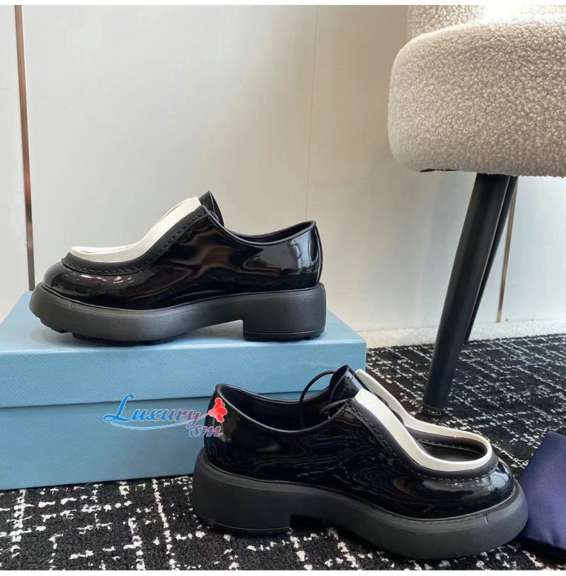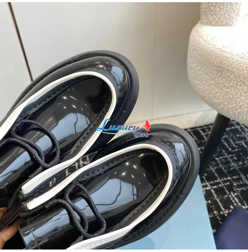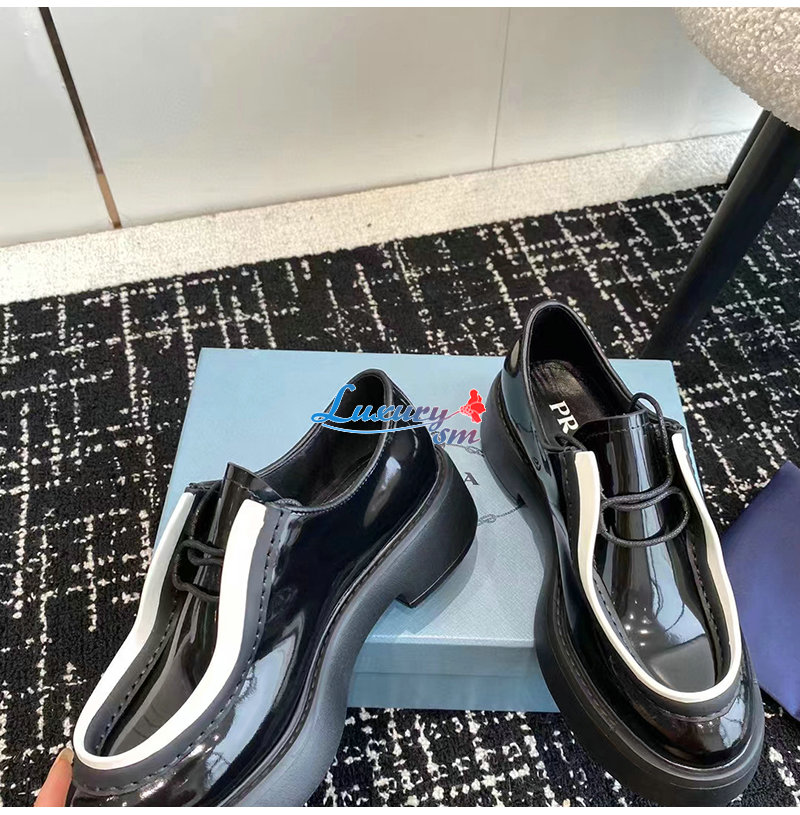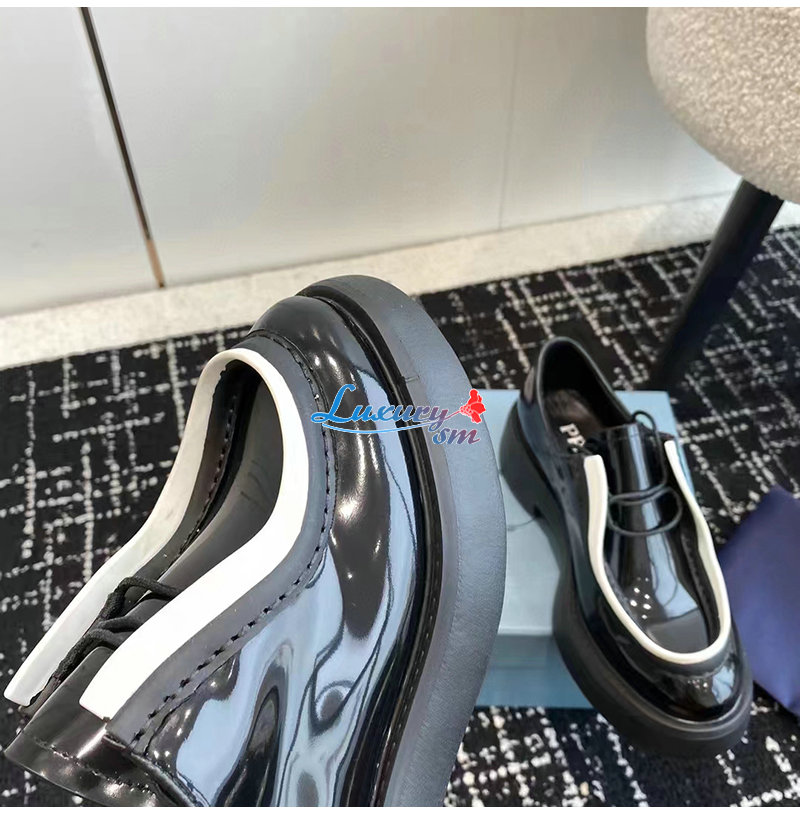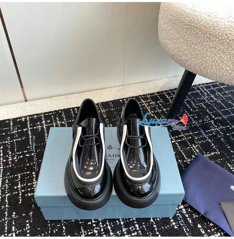 PRADA-1E280N 프라다 블랙/화이트 브러시드 가죽 레이스업 슈즈 여성용