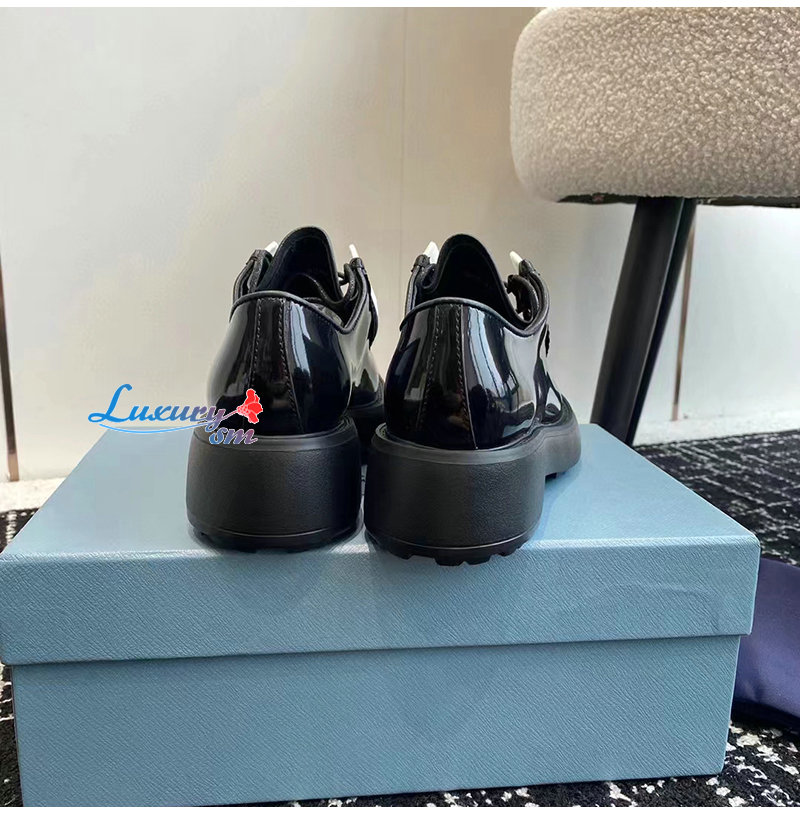 PRADA-1E280N 프라다 블랙 브러시드 가죽 레이스업 슈즈 여성용 가격 : 300,000원