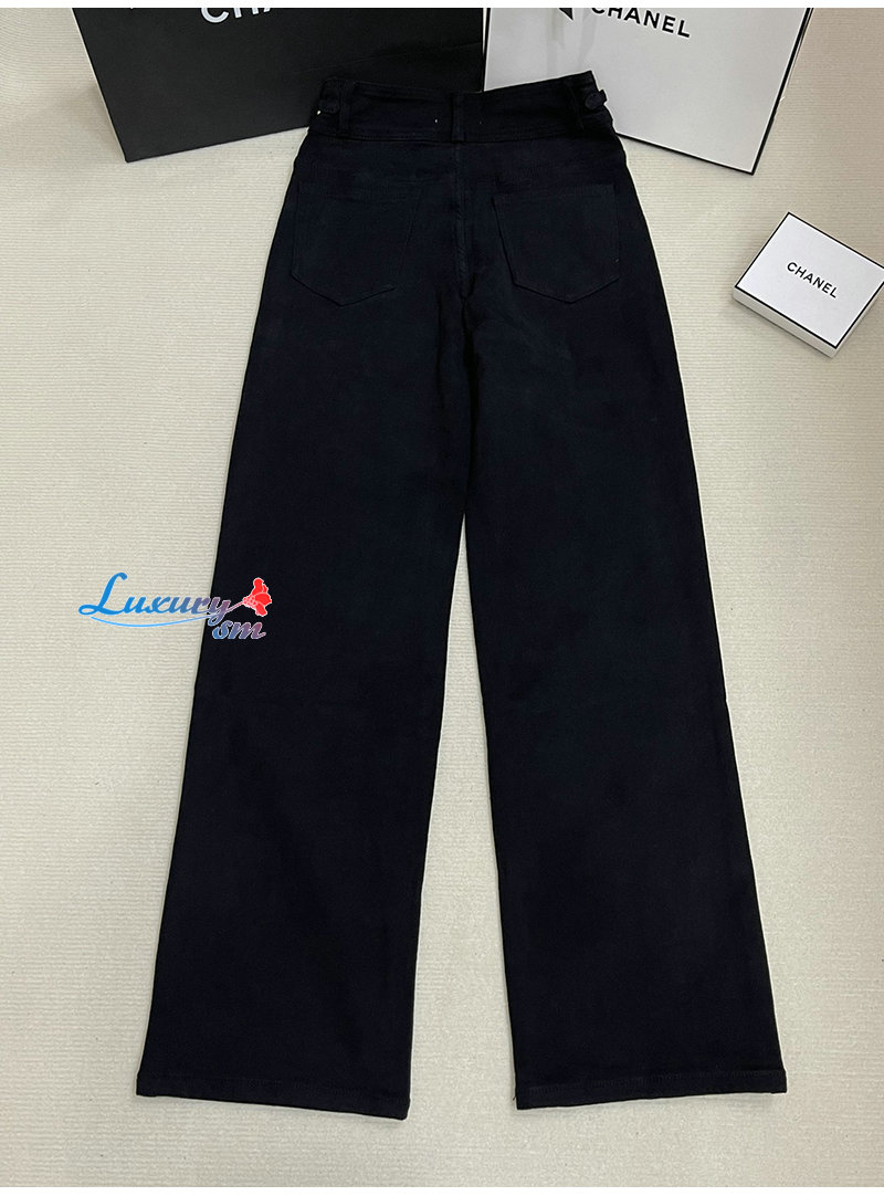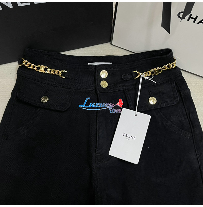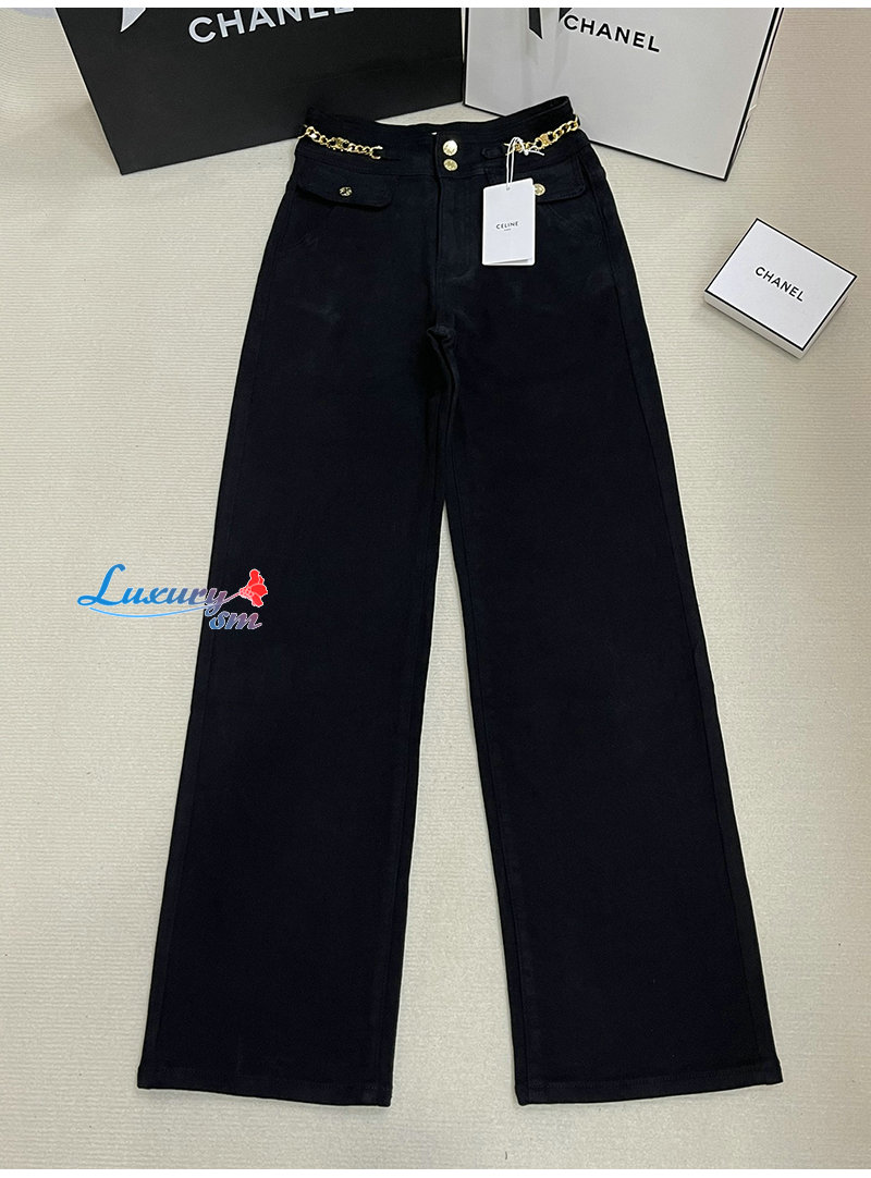 CELINE-12163 셀린느 블랙 메탈 체인 장식 청바지 여성용