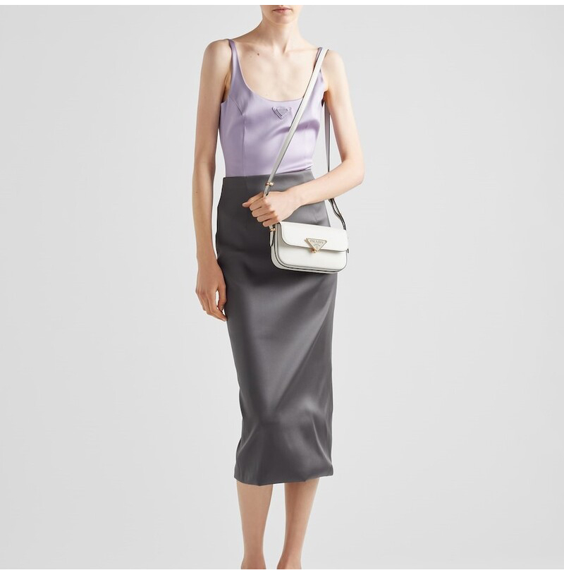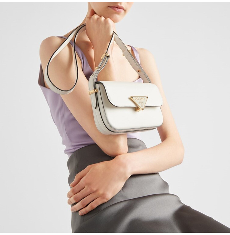 [스페셜오더]PRADA-1BD339 프라다 화이트 카프스킨 트라이앵글 로고 숄더백 20cm