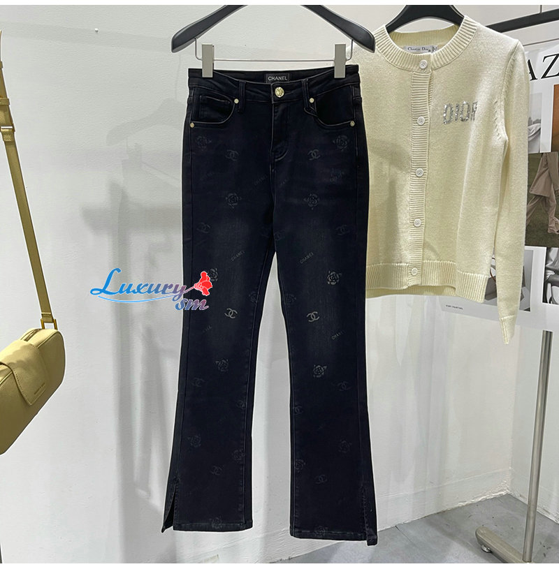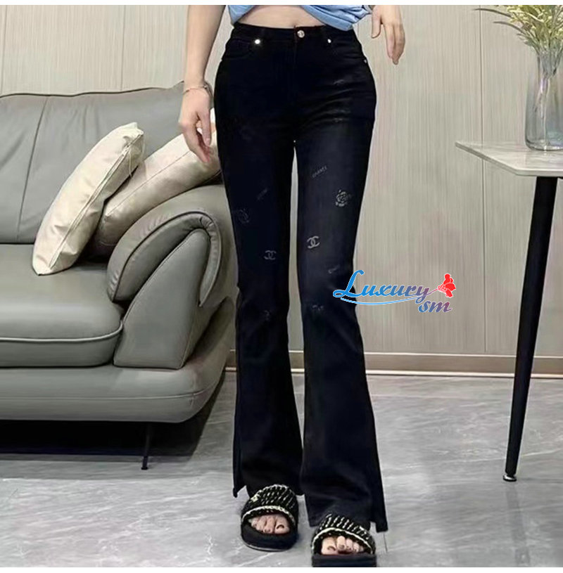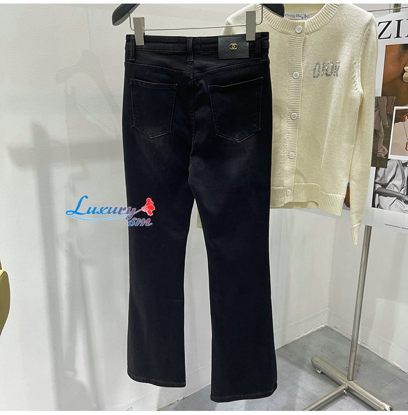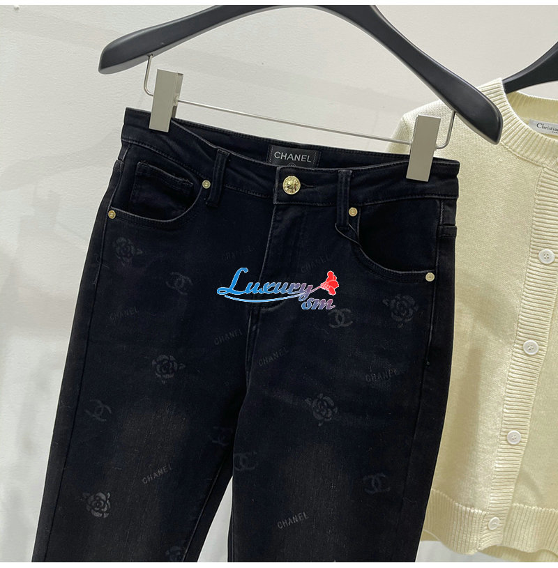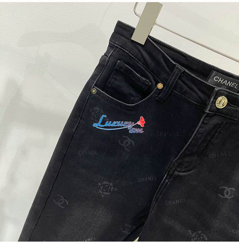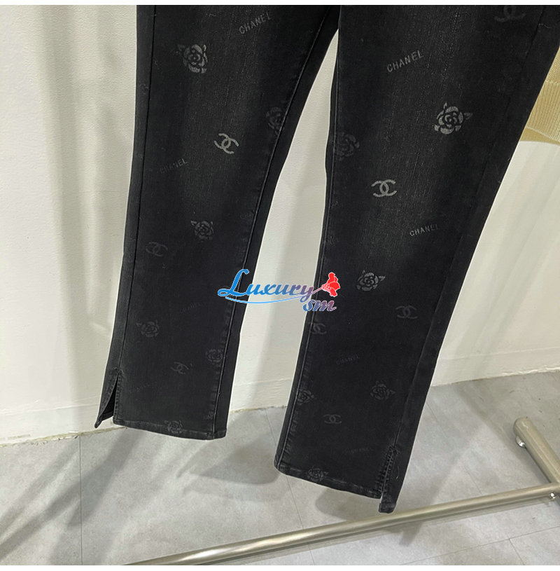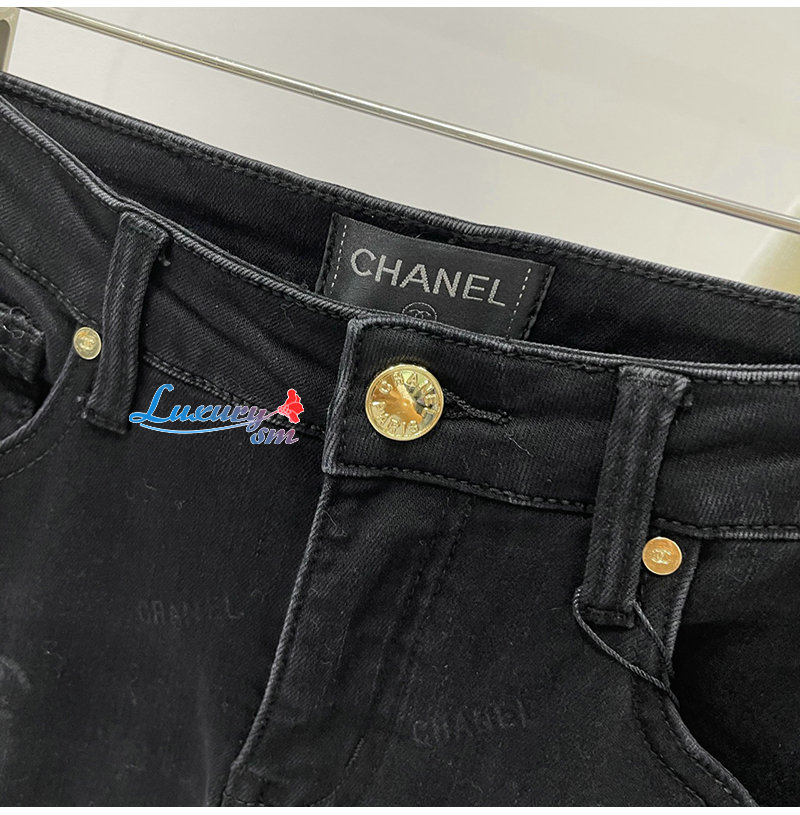 CHANEL-12191 샤넬 블랙 프린트 장식 청바지 여성용