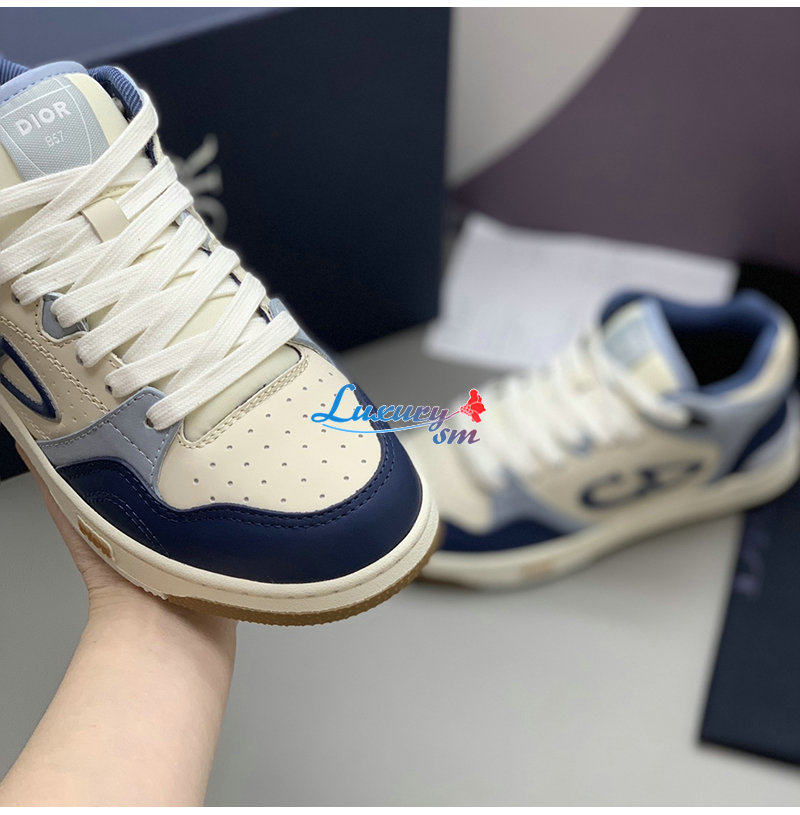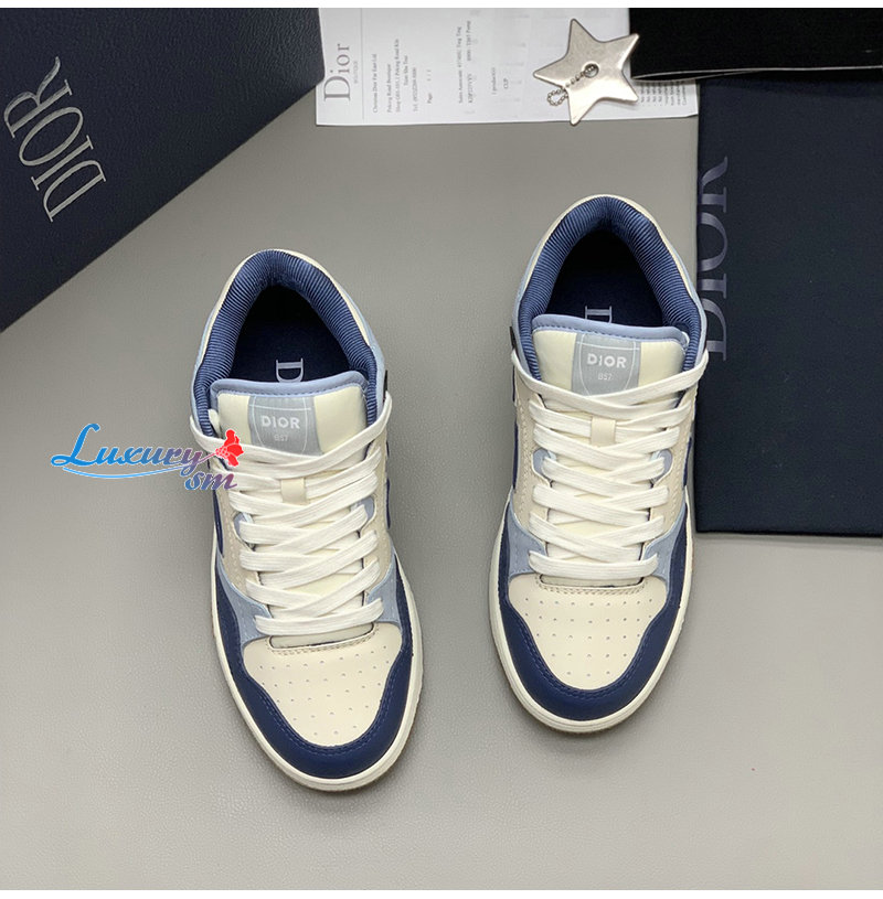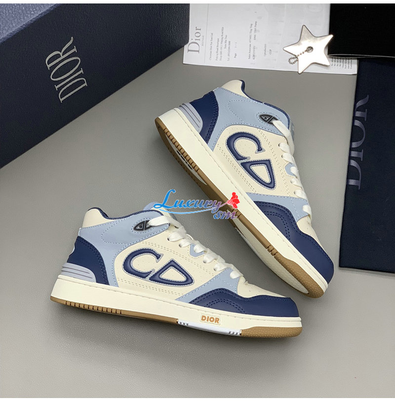 DIOR-3SH141 디올 블루/크림 카프스킨 B57 미드탑 운동화 남녀공용