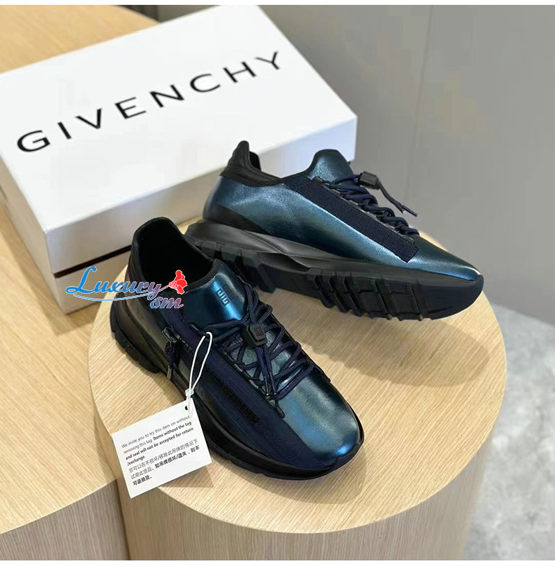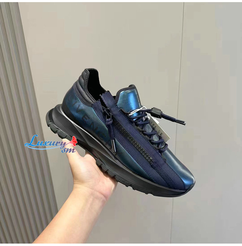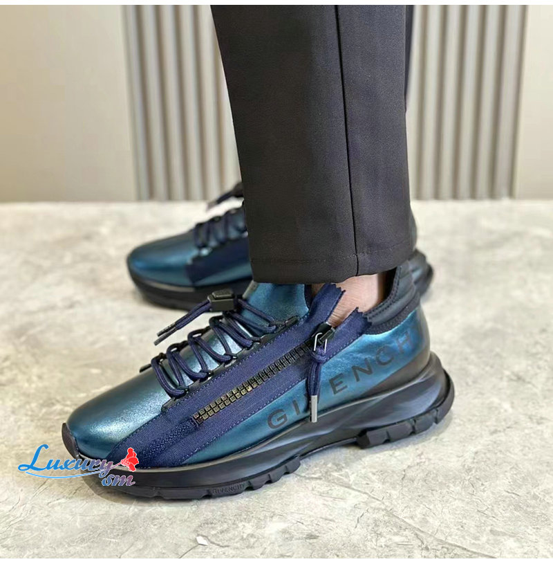 GIVENCHY-BH009BH 지방시 블루 Spectre 라미네이티드 가죽 러너 남성용