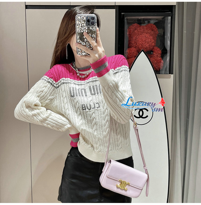 MIUMIU-011015 미우미우 화이트/핫핑크 니트