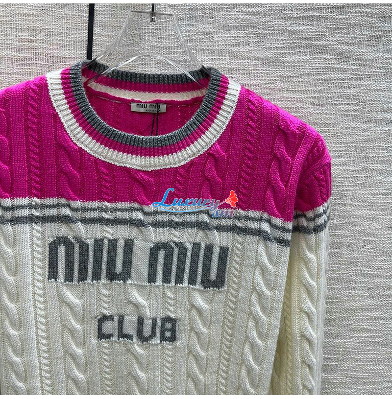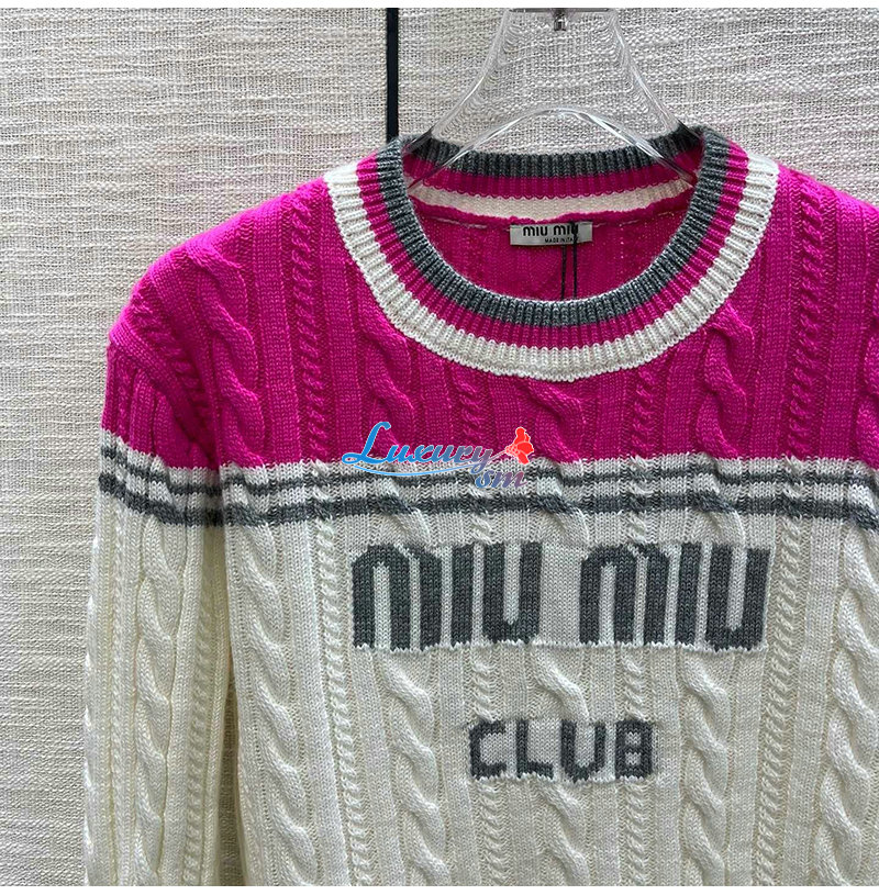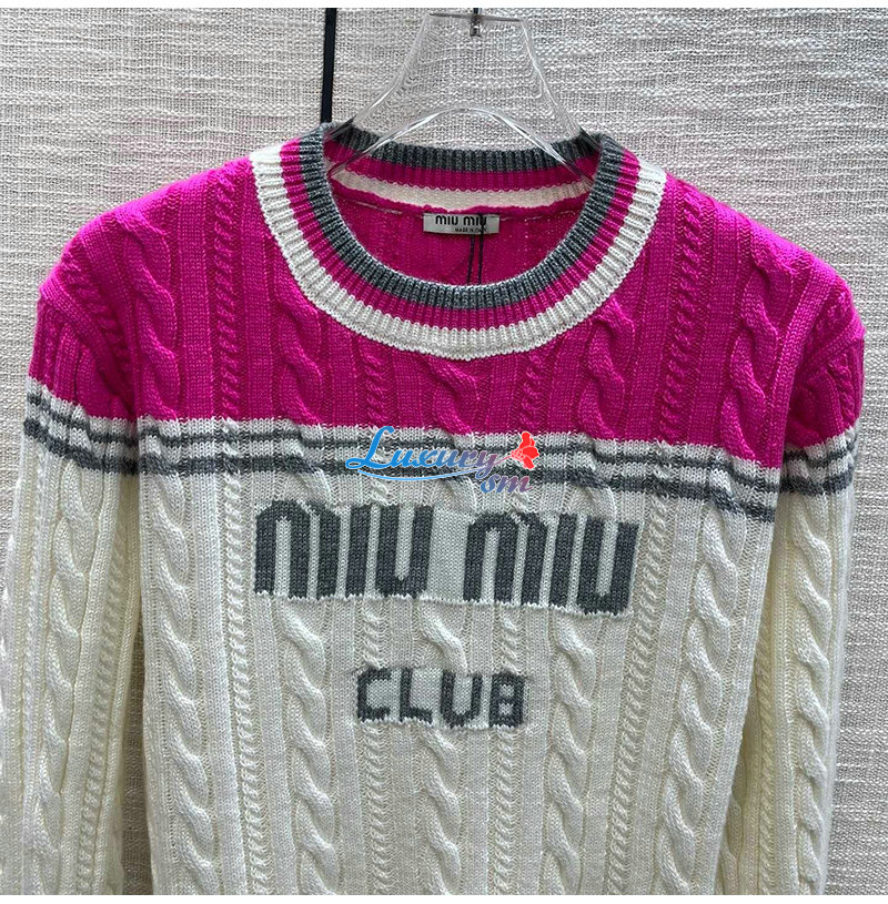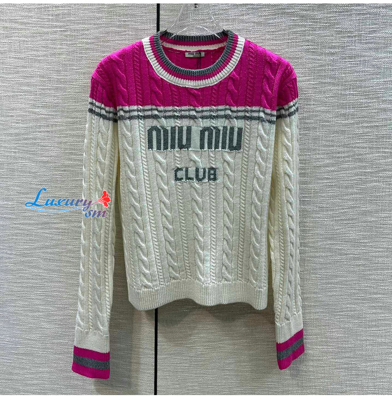 MIUMIU-011015 미우미우 화이트/핫핑크 니트 코튼 스웨터 여성용