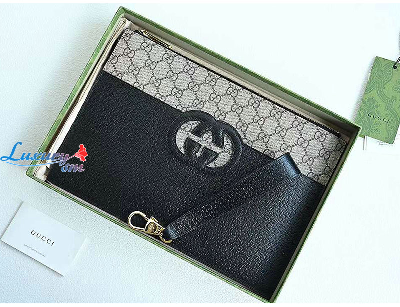 [스페셜오더]GUCCI-723320 9769 구찌 베이지/블랙 컷아웃 인터로킹 G 파우치