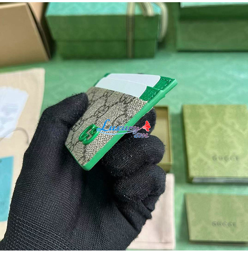 [스페셜오더]GUCCI-768248 9753 구찌 베이지/그린 GG 디테일 카드 케이스
