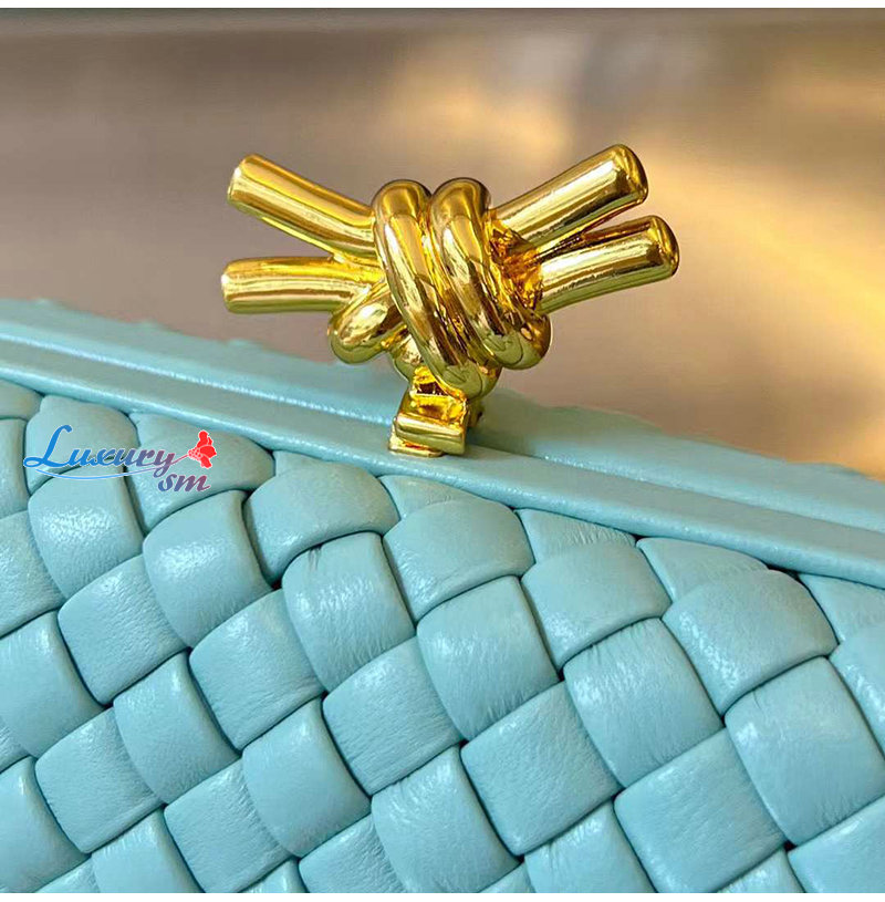 BOTTEGA VENET-202031 보테가 베네타 오로 브루치아토 인트레치오 파일 므와레 스트레치 놋 클러치 가격 : 360,000원