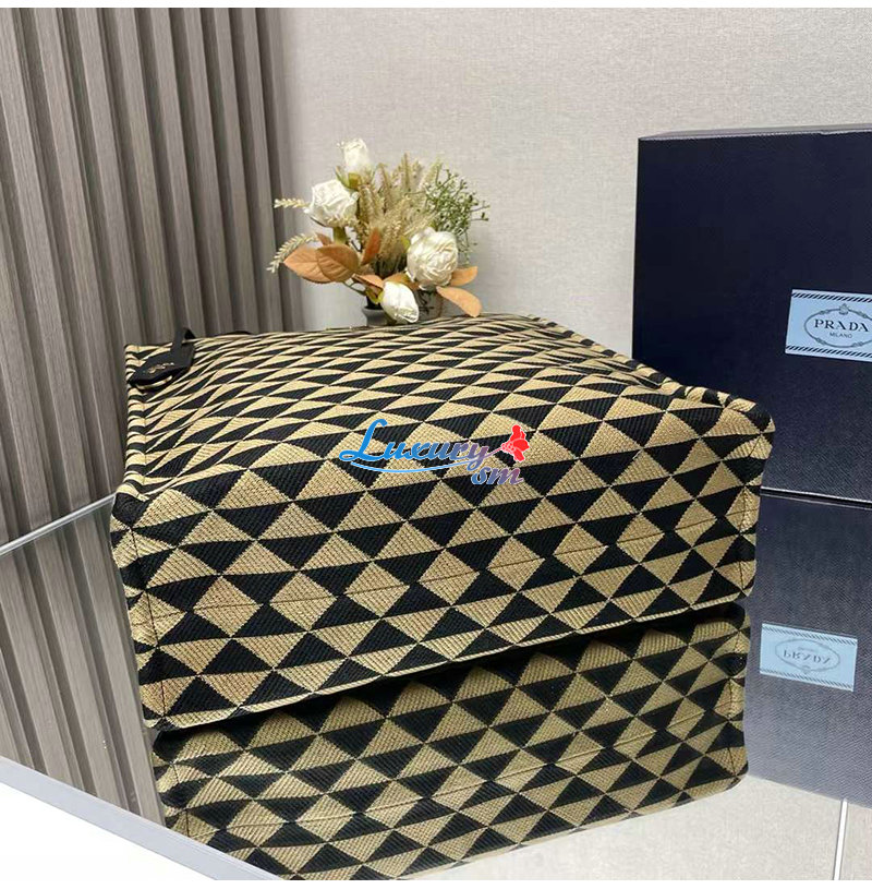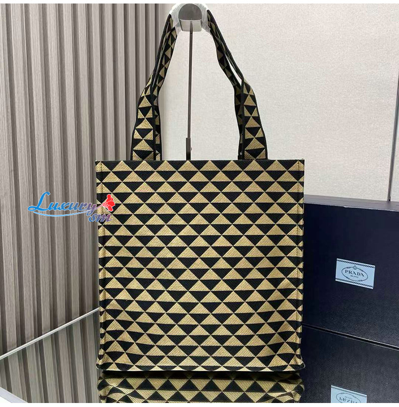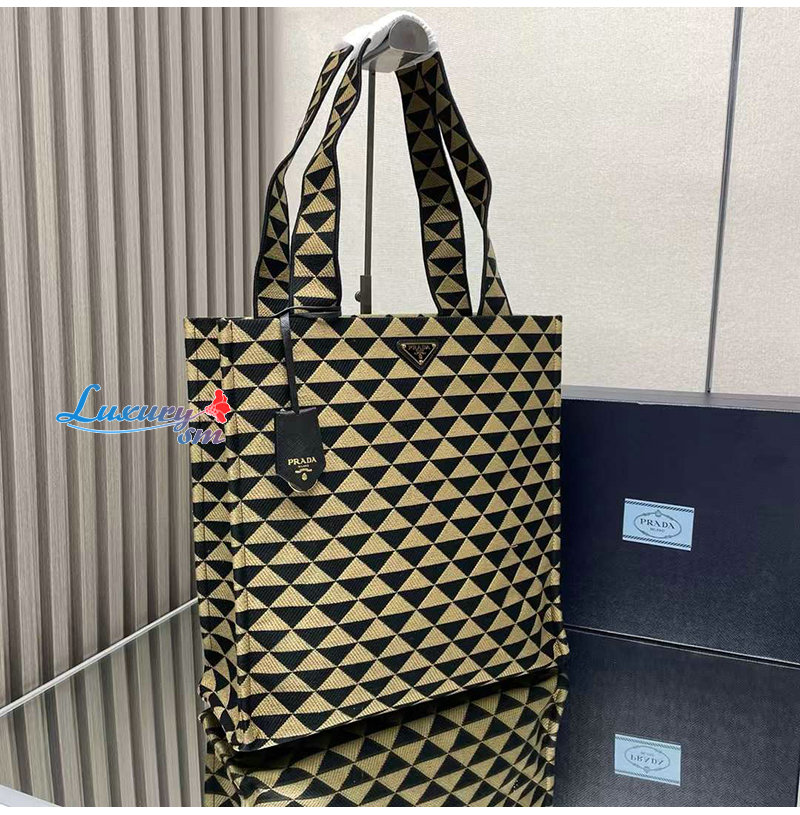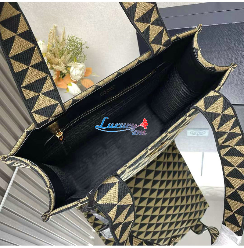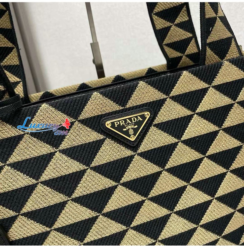 [스페셜오더]PRADA-2VG107 프라다 블랙/베이지 자수 패브릭 심볼 토트 백