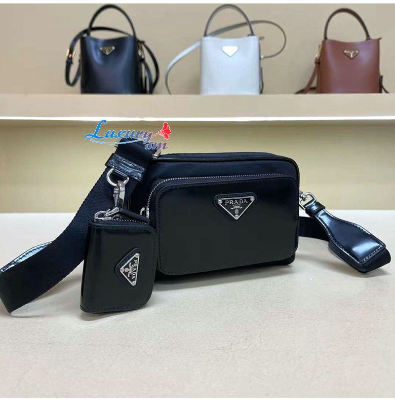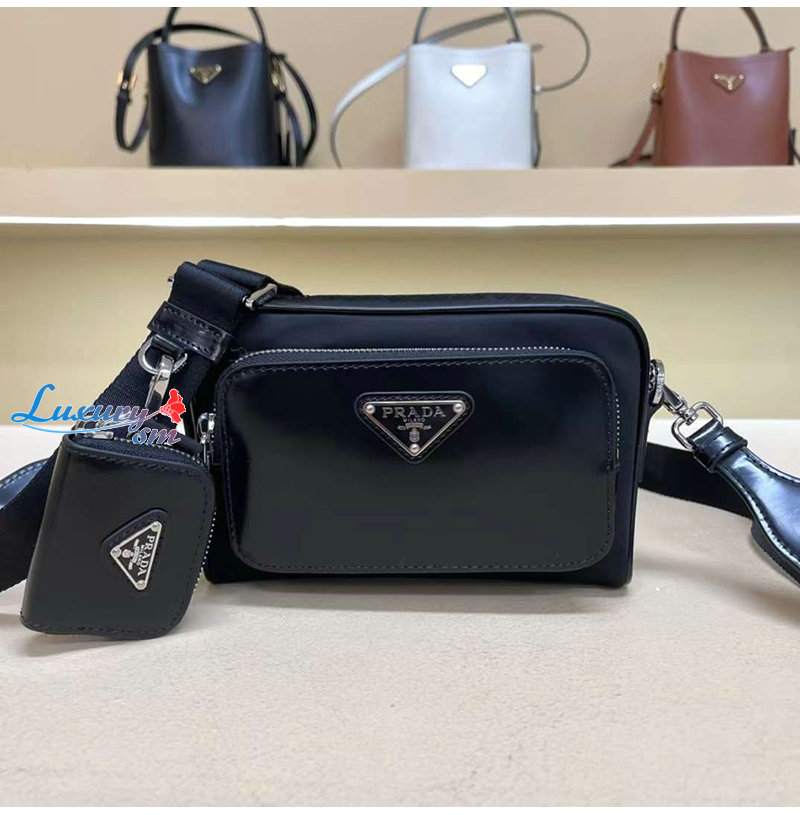 [스페셜오더]PRADA-2VH172 프라다 블랙 리나일론 브러쉬드 가죽 숄더백