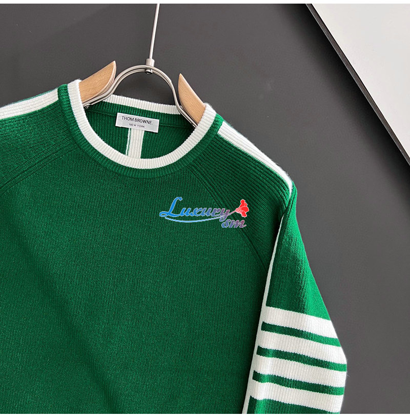 THOM BROWNE-03109 톰 브라운 그린 스트라이프 장식 스웨터 남성용