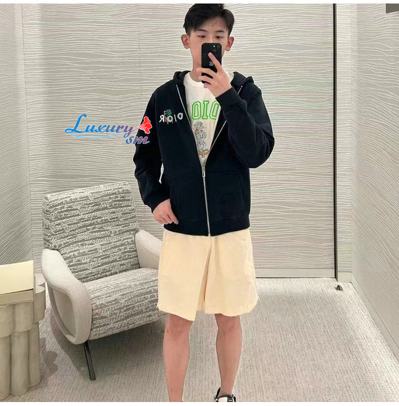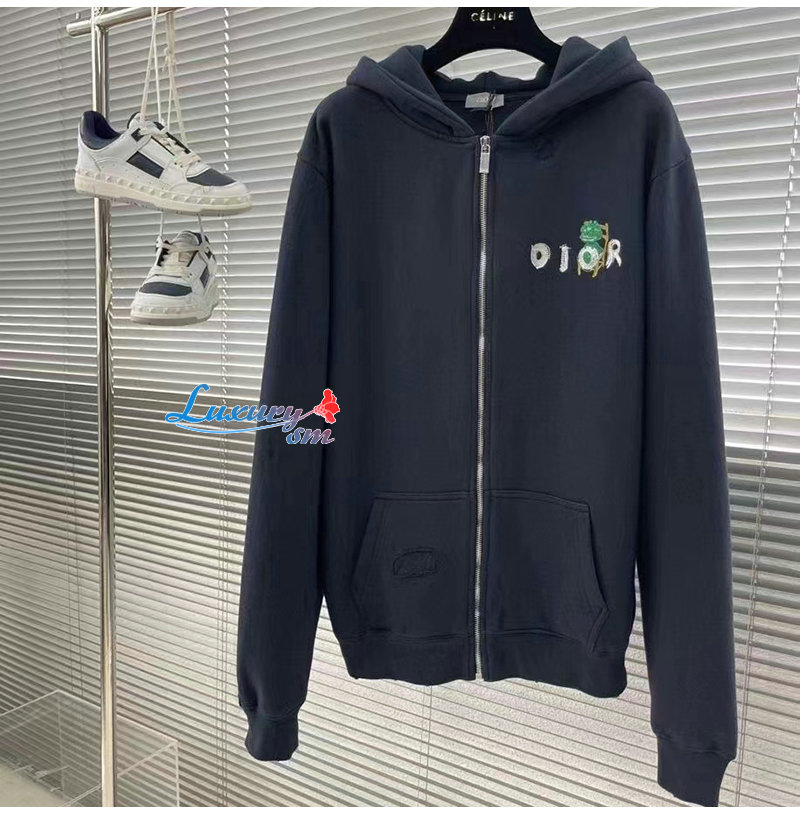 DIOR-03101 디올 네이비 아플리케 장식 후드 재킷 남여공용