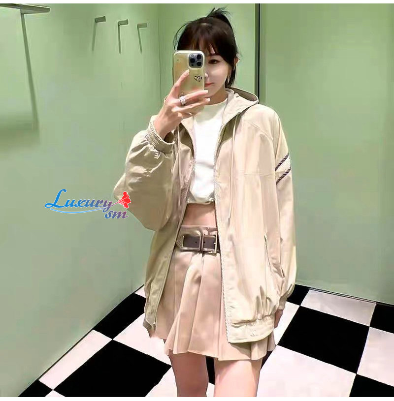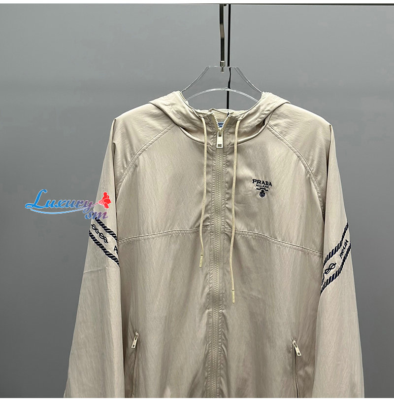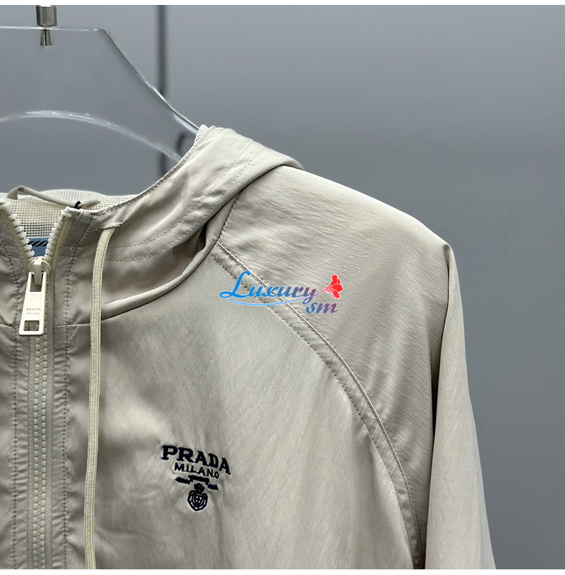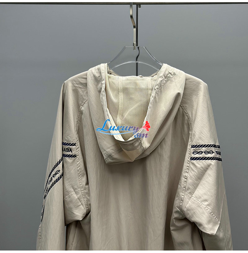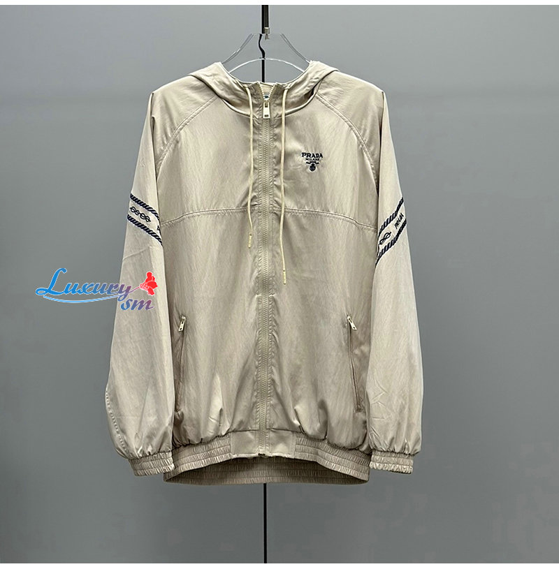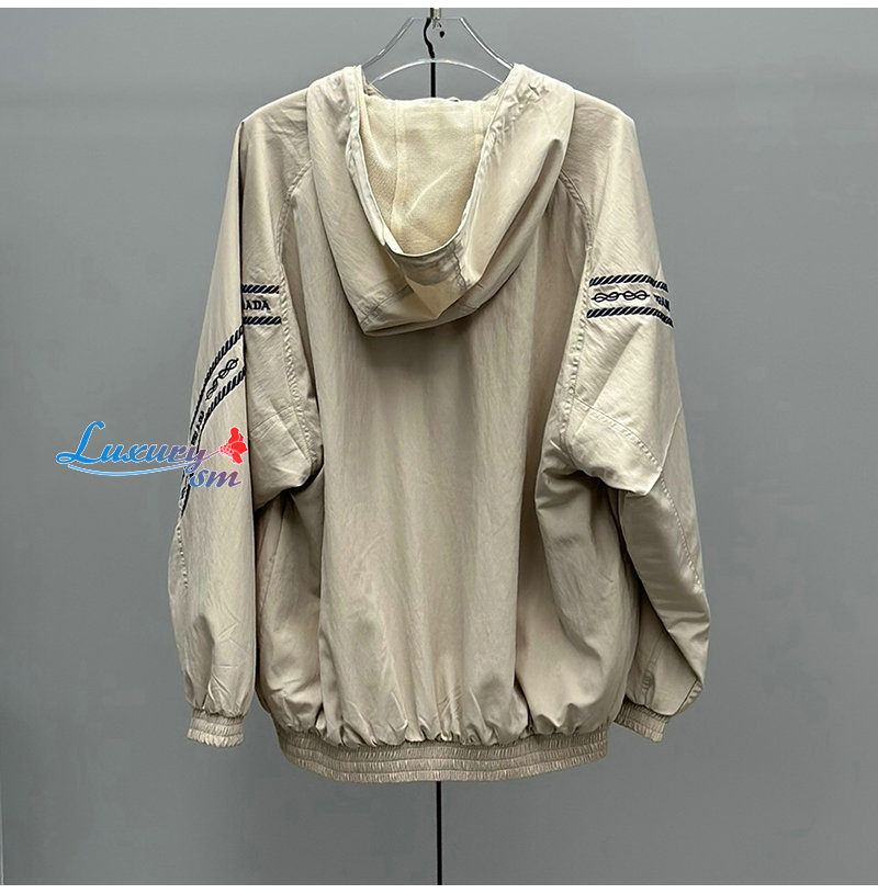 PRADA-031018 프라다 베이지 아플리케 장식 바람막이 후드 재킷 여성용
