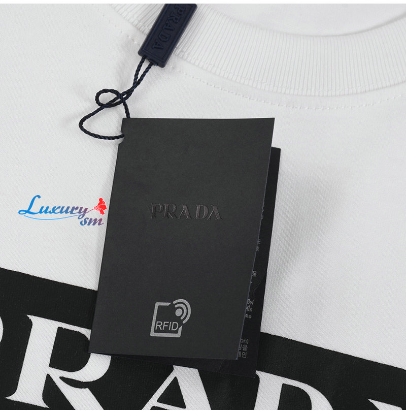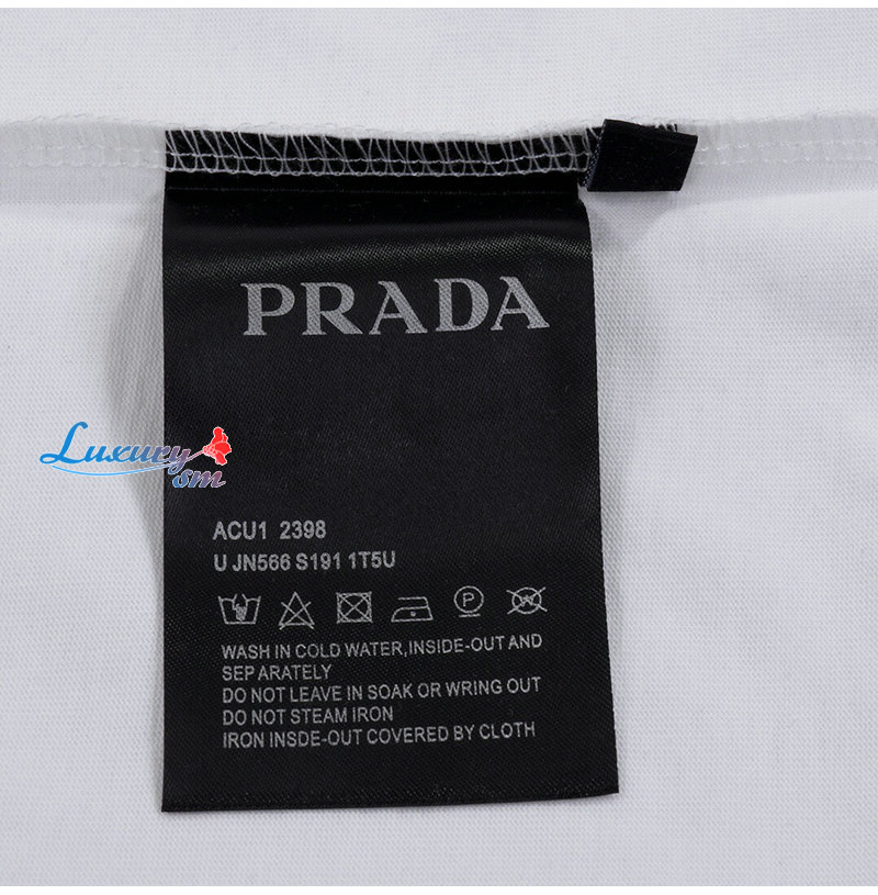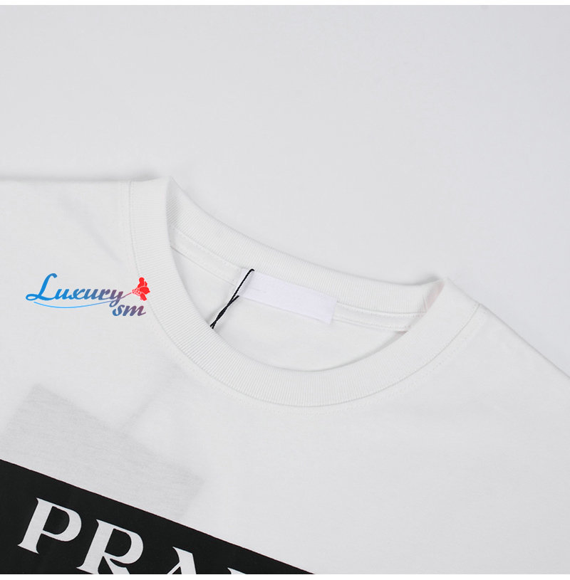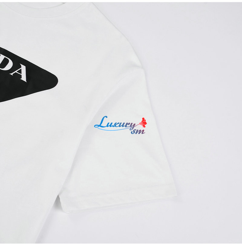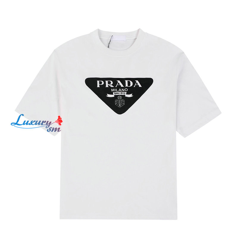 PRADA-03177 프라다 화이트 트라이앵글 로고 프린트 장식 티셔츠 남여공용