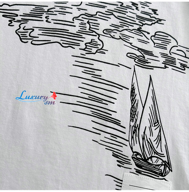 THOM BROWNE-031715 톰 브라운 화이트 프린트 장식 티셔츠 남성용