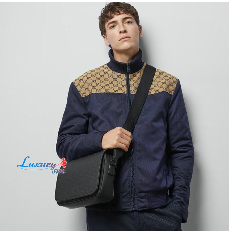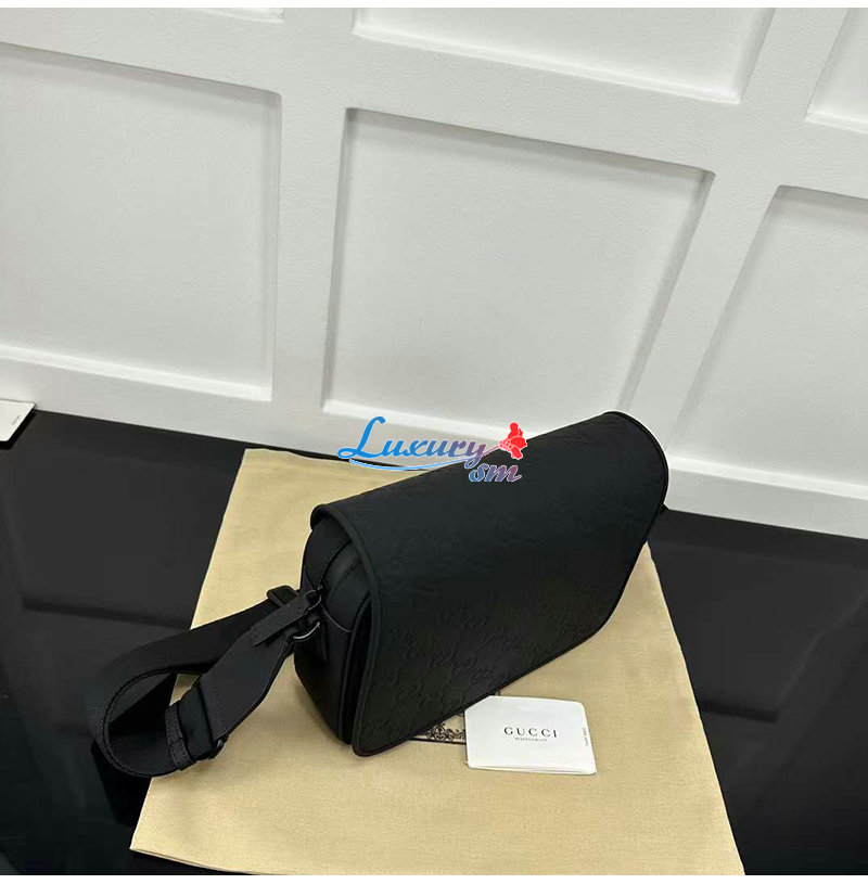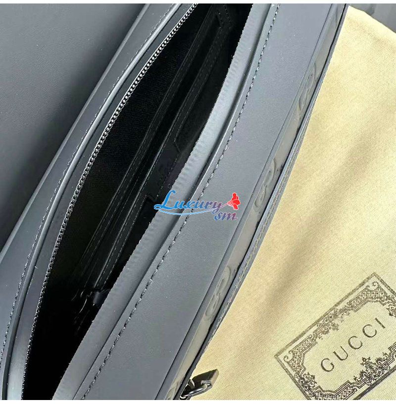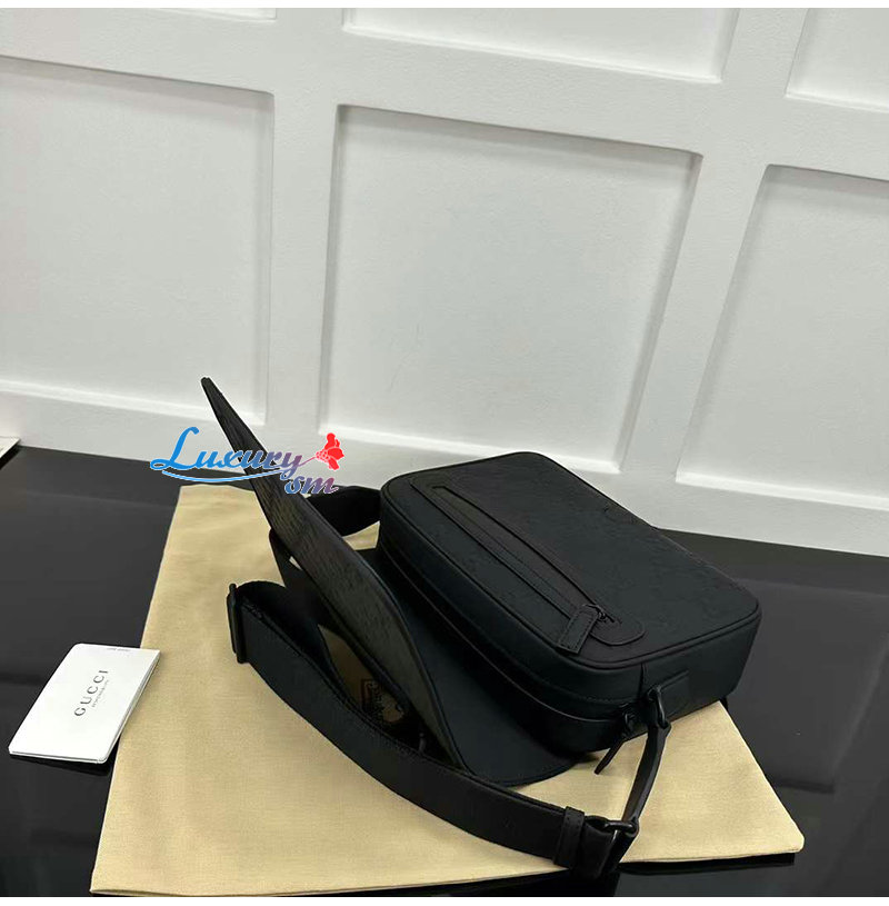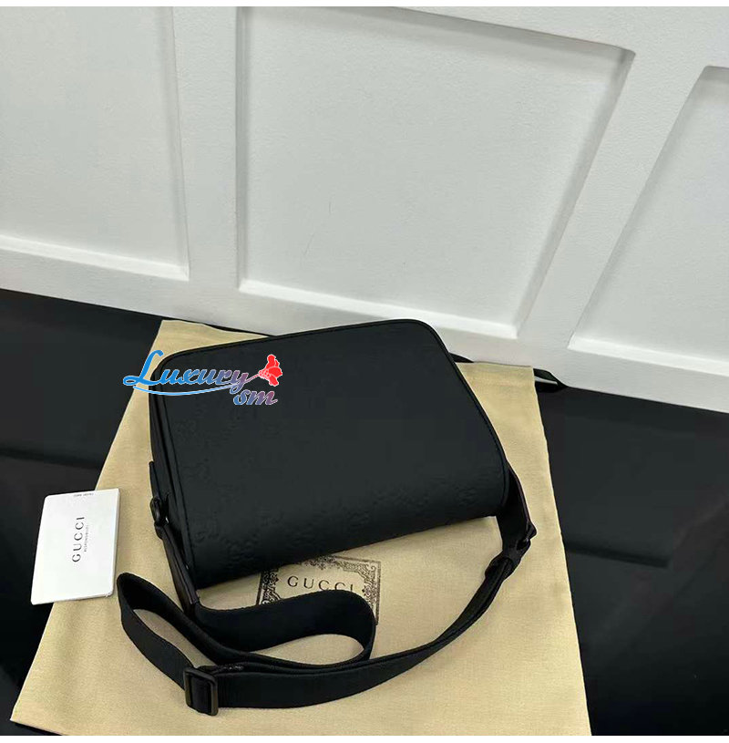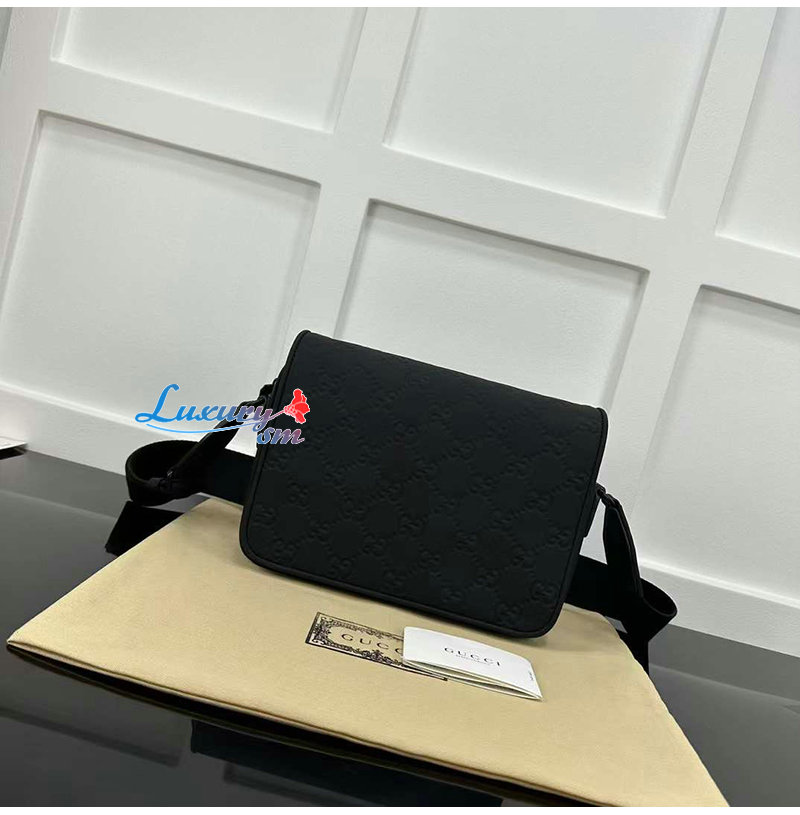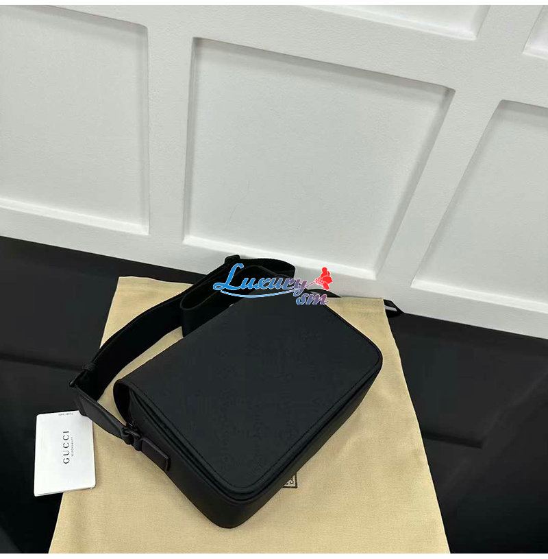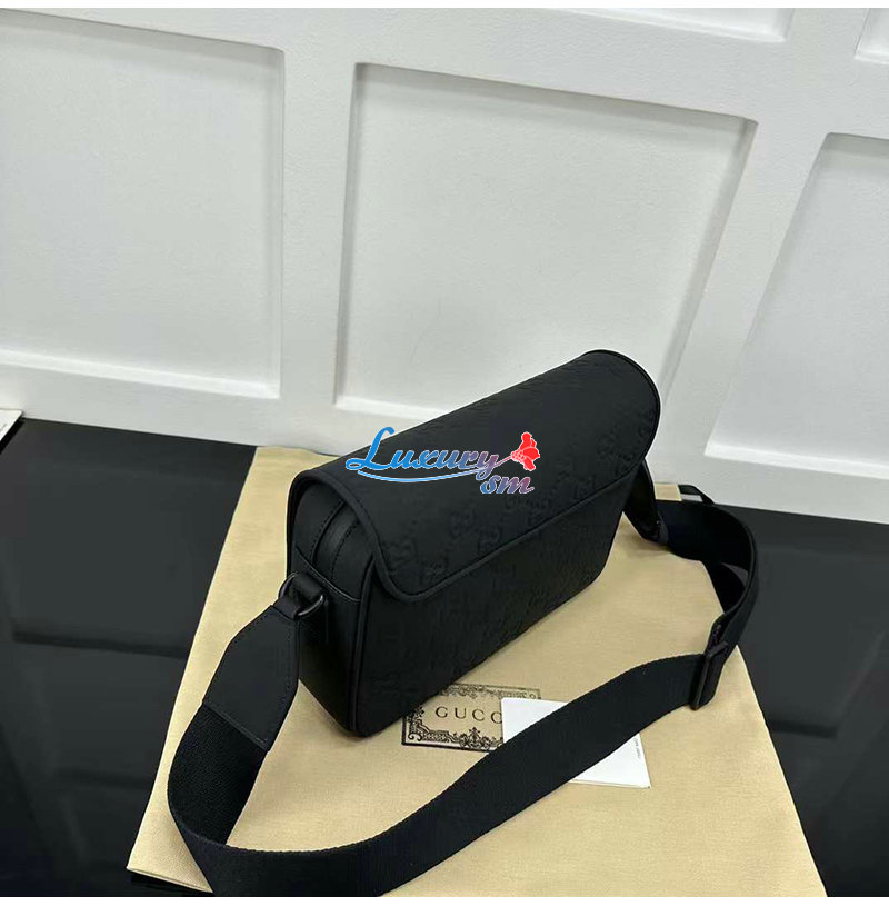 [스페셜오더]GUCCI-775097 1000 구찌 블랙 가죽 GG 러버 효과 크로스백